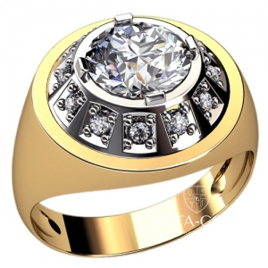 Печатка с высокой круглой площадкой с крупным бриллиантом 3109 (Вес: 6,4 гр.)