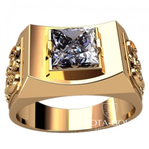 Мужская печатка крупная с узором, вогнутой площадкой и крупным квадратным бриллиантом 3111 (Вес: 8,7 гр.)