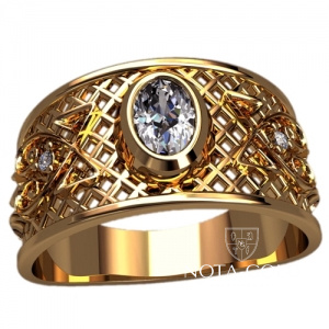 Печатка с рельефным узором, с крупным овальным бриллиантом 3124 (Вес: 5 гр.)
