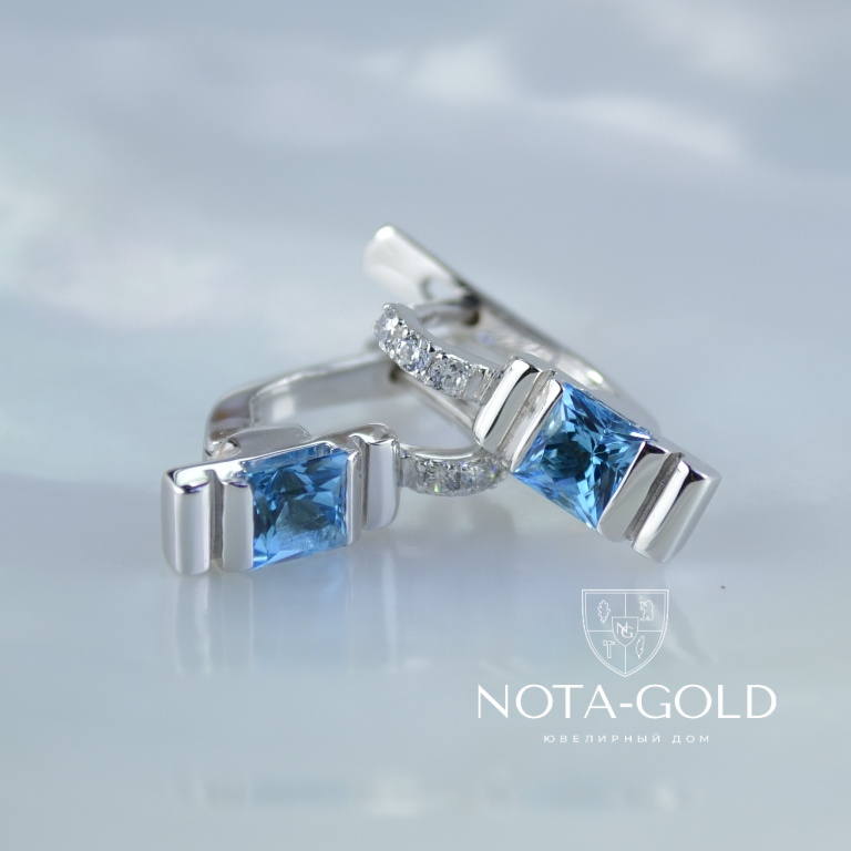 Серьги из белого золота с голубыми топазами (Вес: 3 гр.)