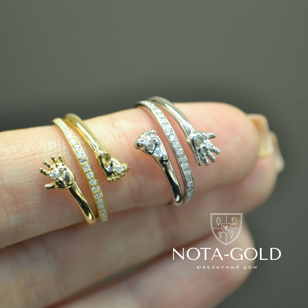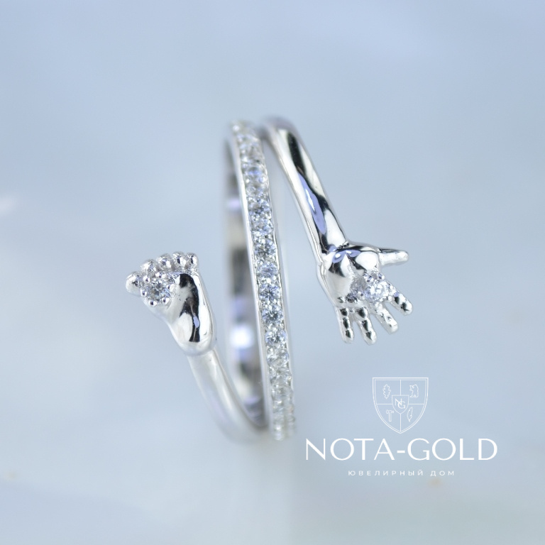 Кольцо с ножкой и ручкой младенца два в одном с фианитами из серебра (Вес: 2,5 гр.)