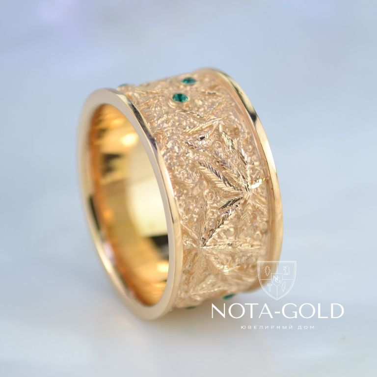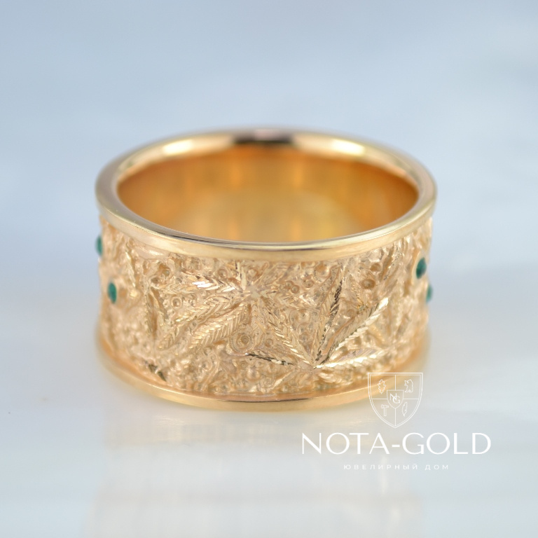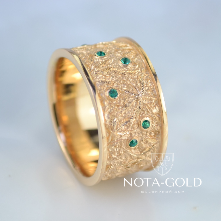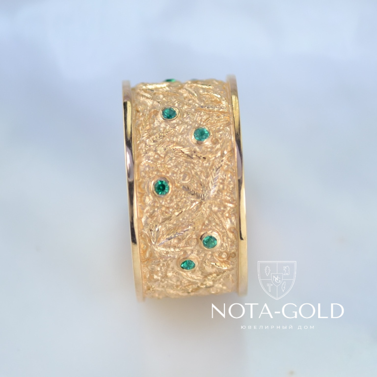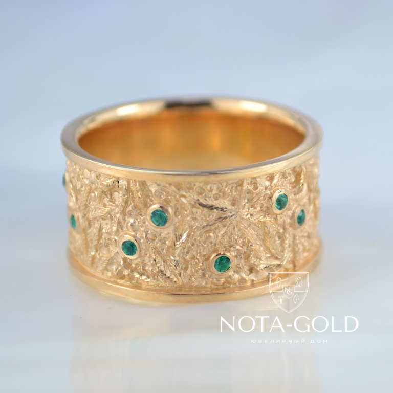 Широкое кольцо с необычной фактурой и цветными камнями (Вес: 10 гр.)