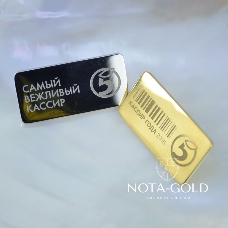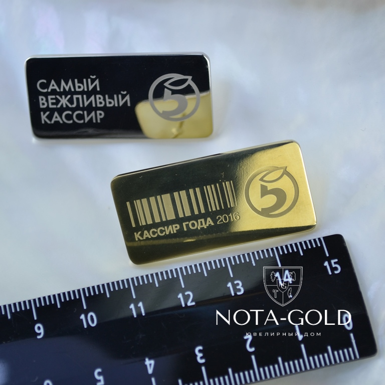 Наградные корпоративные значки из серебра с позолотой для сети магазинов (вес 15 гр.)