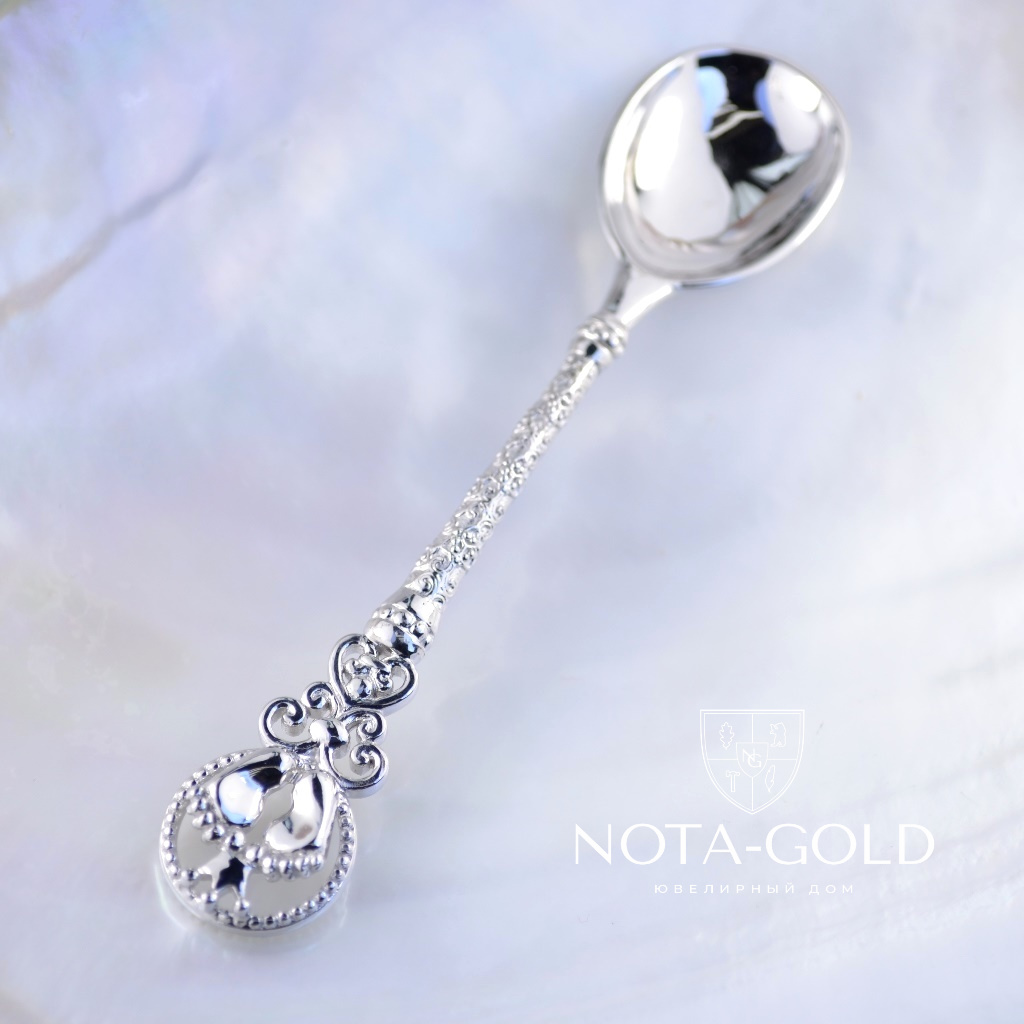 Серебряная ложечка в подарок на рождения ребёнка с пяточками младенца (Вес: 17 гр.)
