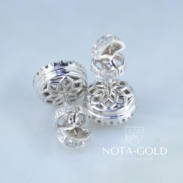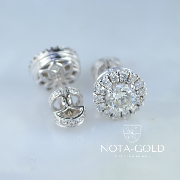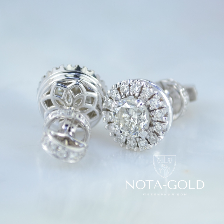 Серьги пусеты с бриллиантами из белого золота на винтовой закрутке (Вес: 5,5 гр.)