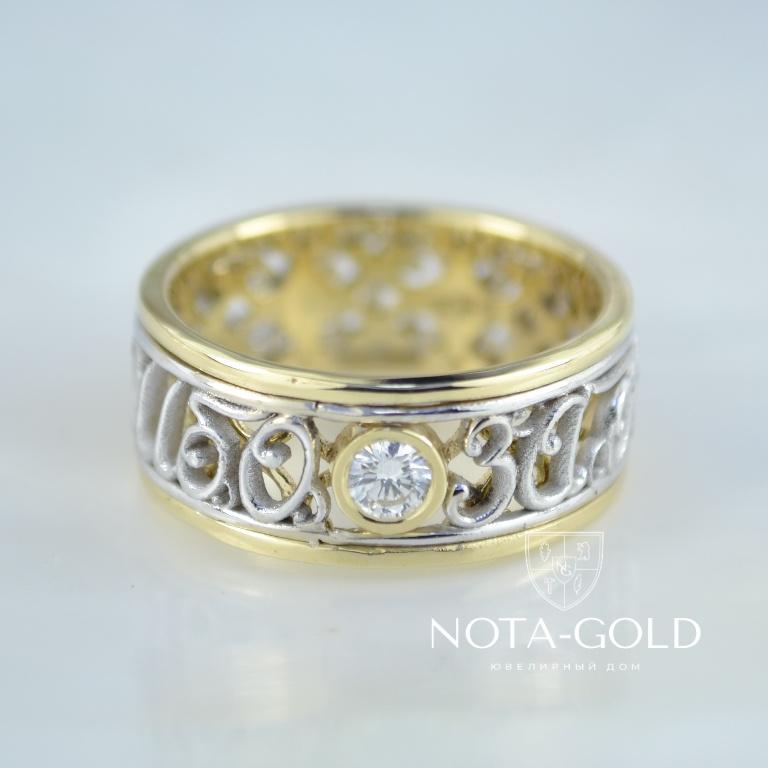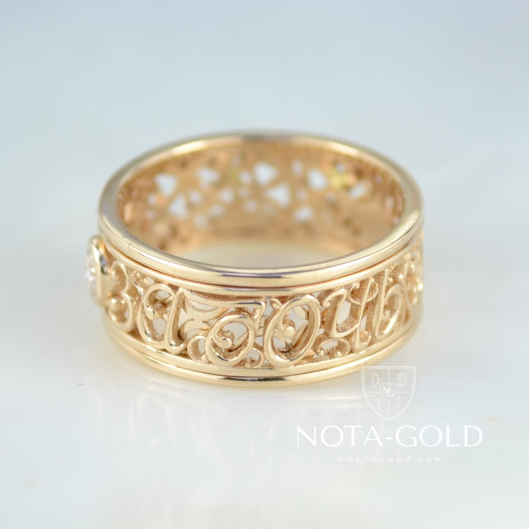 Кольцо на рождение девочки СПАСИБО ЗА ДОЧЬ из золота с бриллиантом (Вес: 4 гр.)
