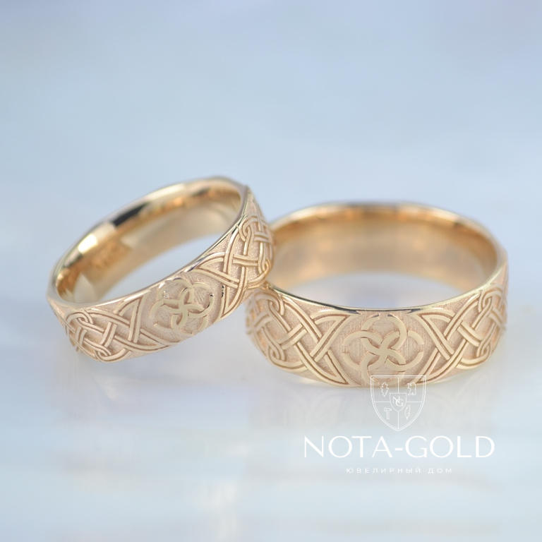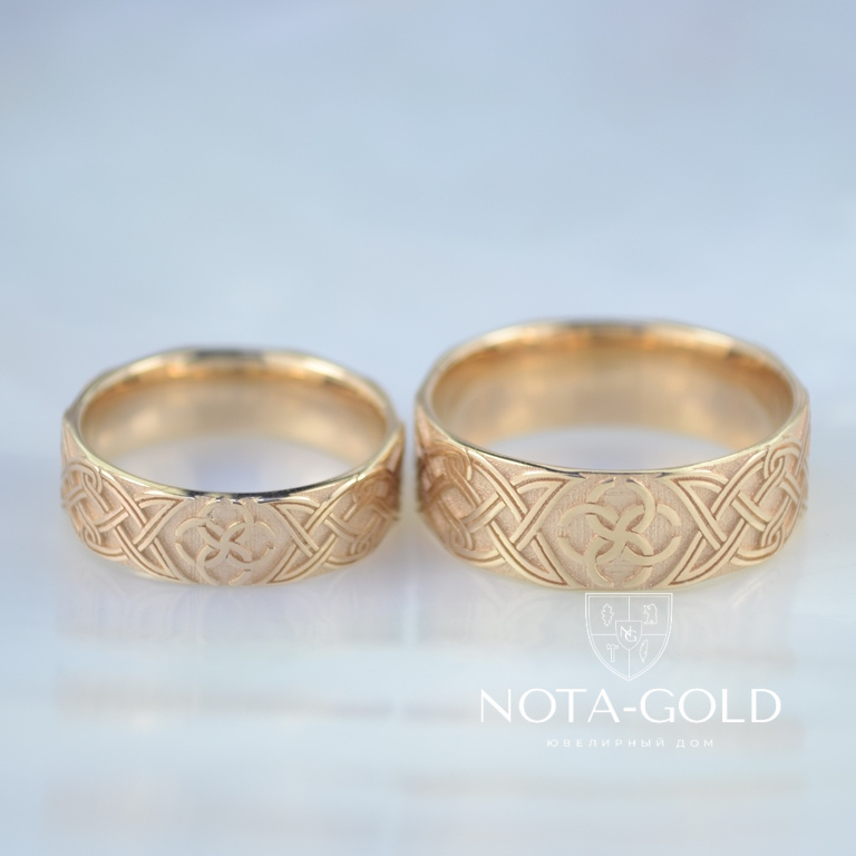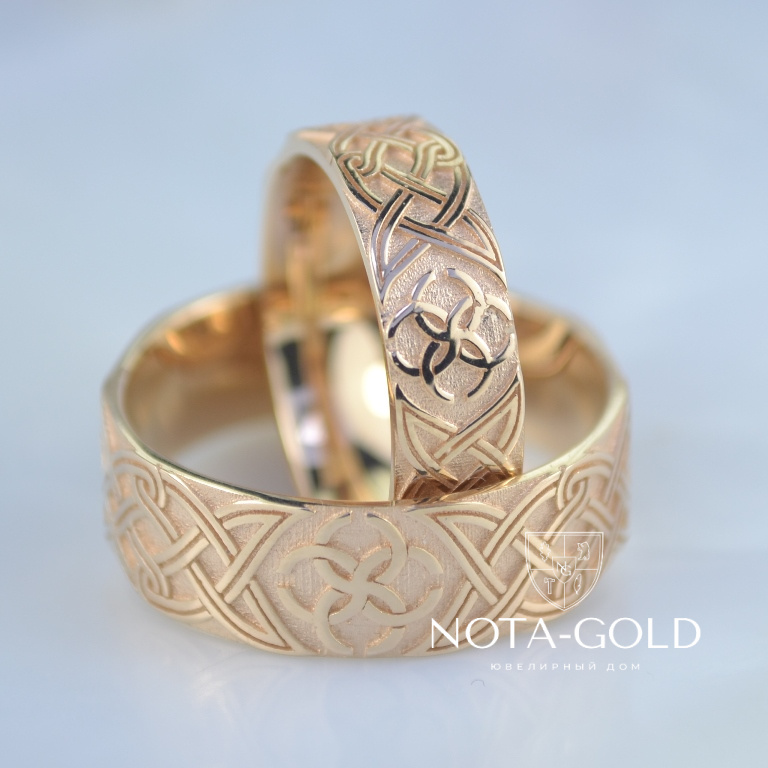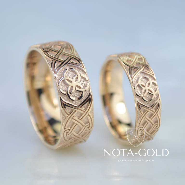 Славянские обручальные кольца со свадебником и кельтским узором (Вес пары: 11 гр.)