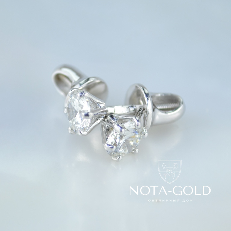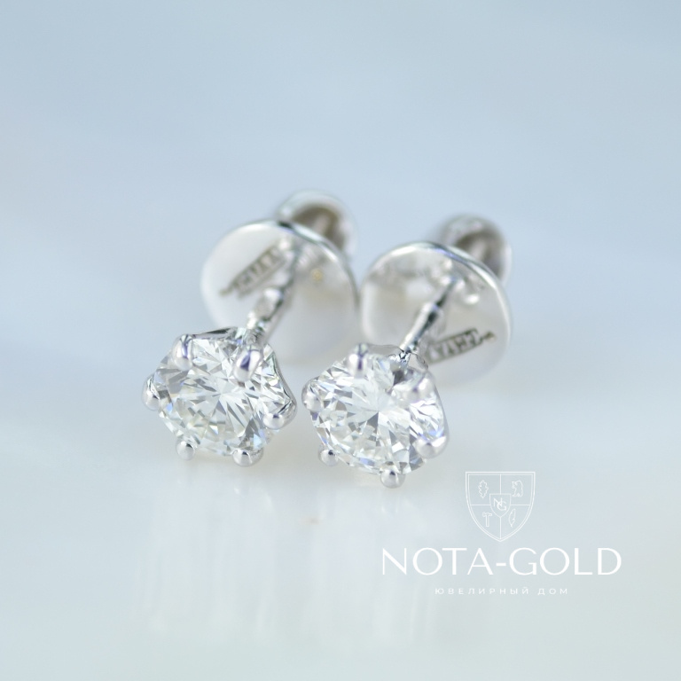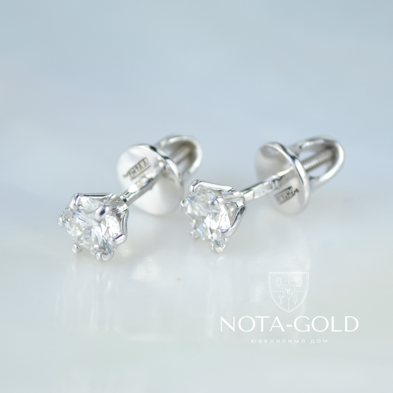 Серьги гвоздики из белого золота с бриллиантами половина карата (Вес 2,5 гр.)