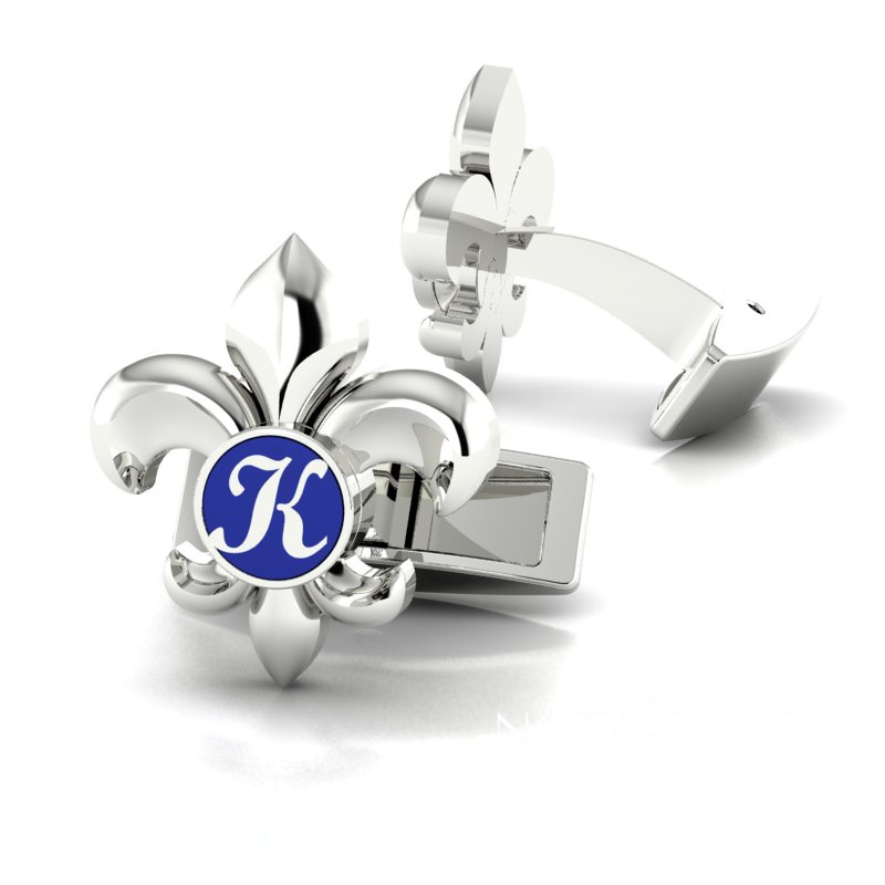 Серебряные запонки с геральдической лилией, инициалами и эмалью (Вес 9 гр.)