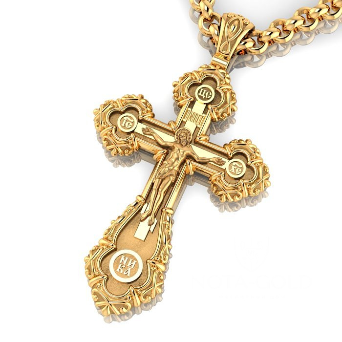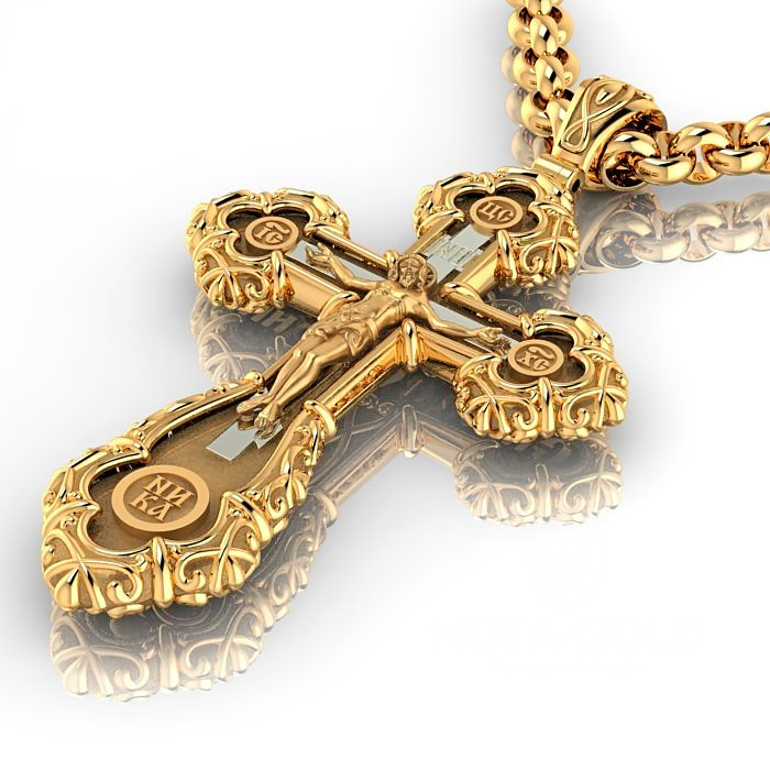 Мужской крест большого размера из жёлтого золота с ажуром (Вес: 32 гр.)