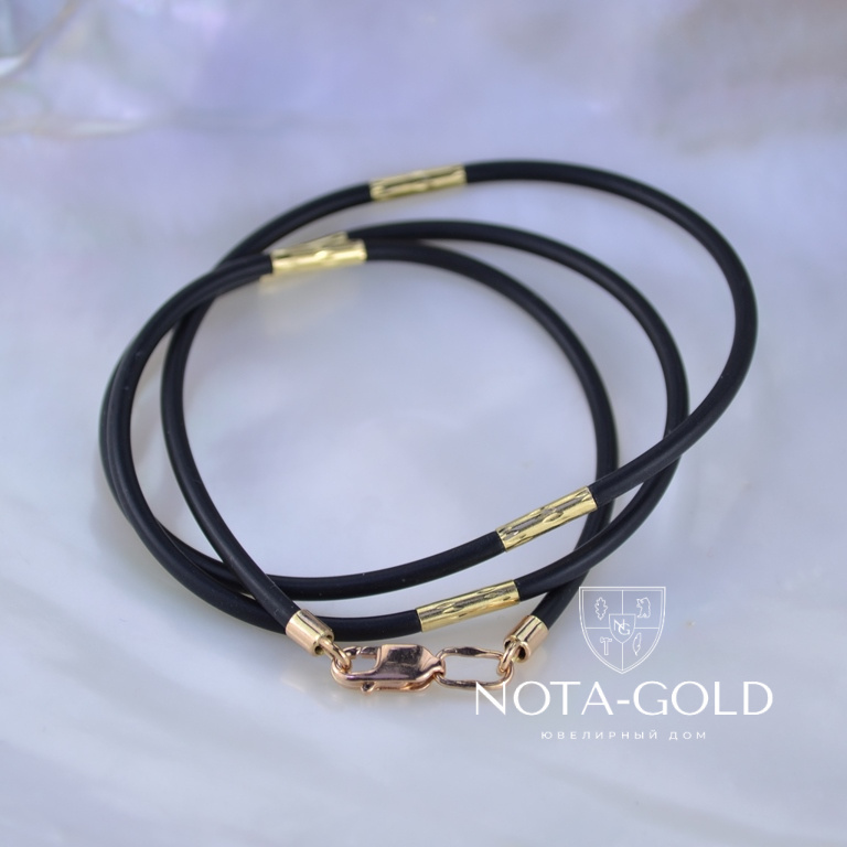 Каучуковый шнурок гайтан с золотым замком и золотыми вставками (Вес: 3 гр.)