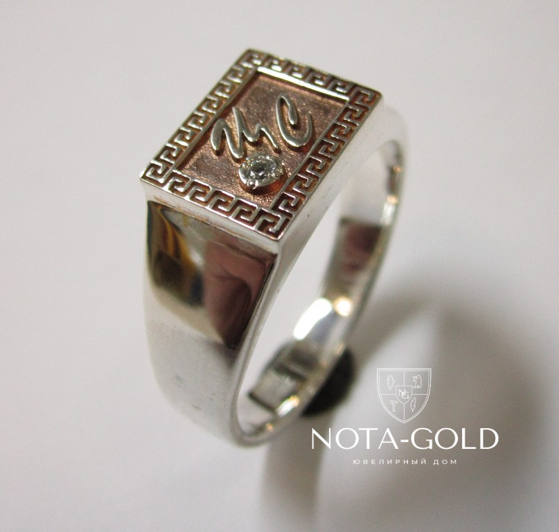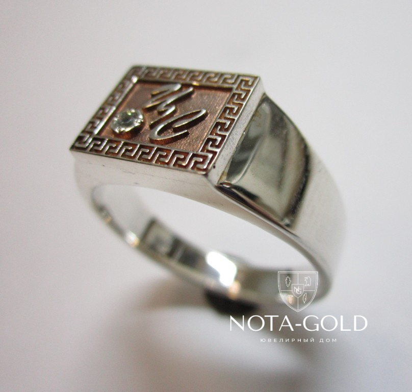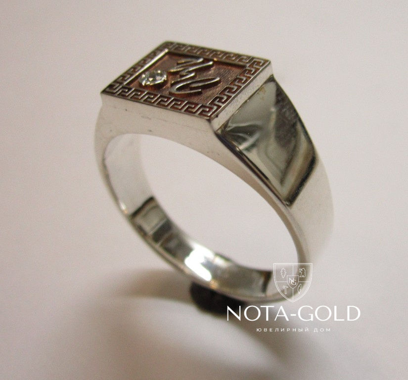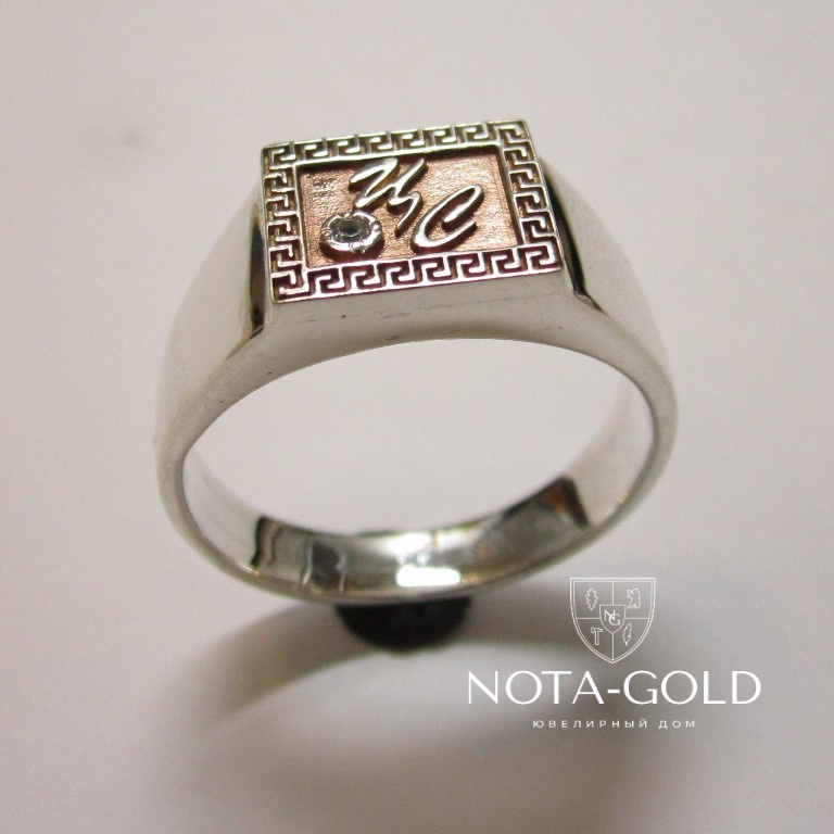 Печатка с инициалами и бриллиантами на заказ (Вес: 12 гр.)