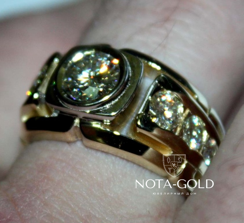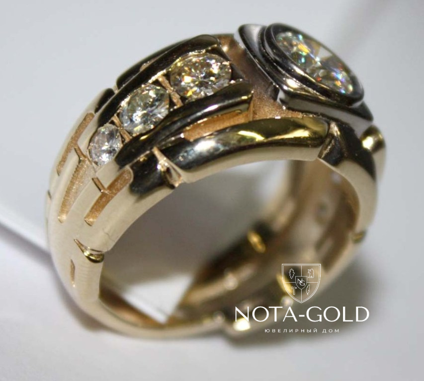 Авторская эксклюзивная ювелирная работа - Печатка на заказ с каратником, сделанная по эскизам Ювелира. (ручная работа, жёлтое золото, белые бриллианты, каратник, золото 585 пробы).