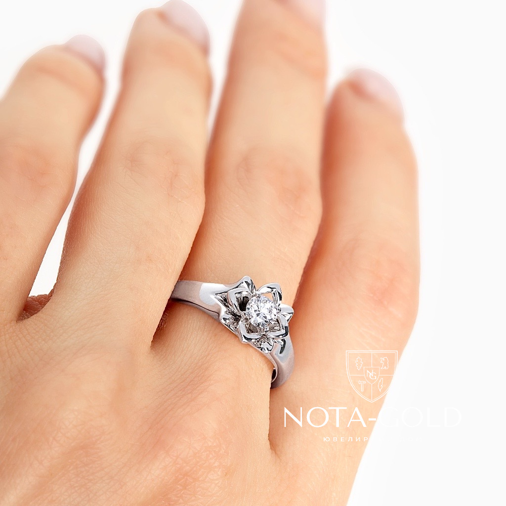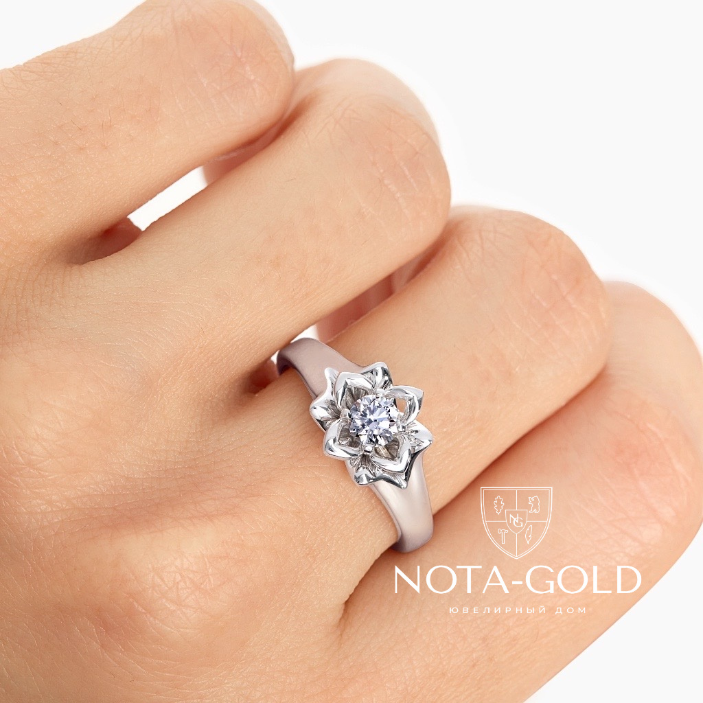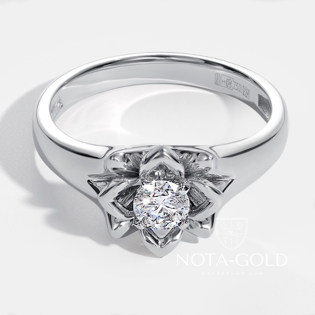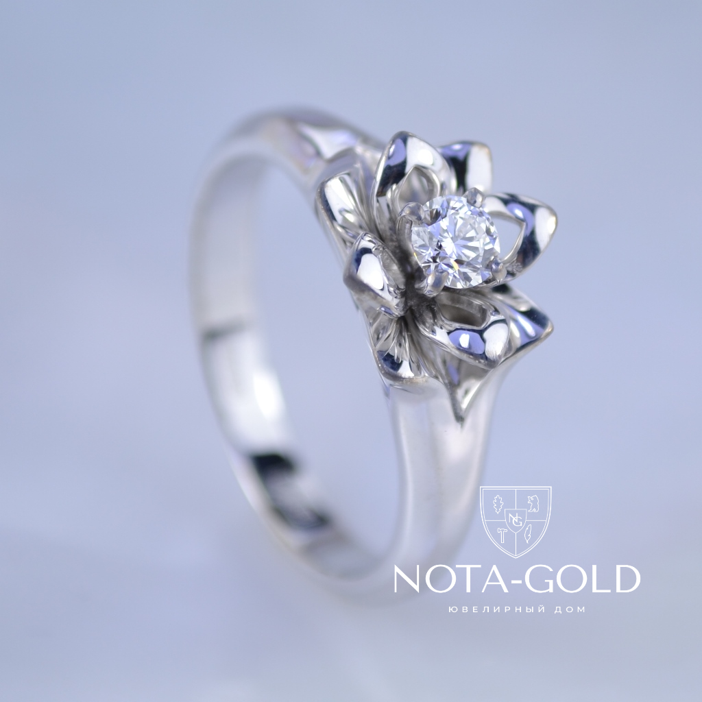 Эксклюзивное кольцо лилия из белого золота с бриллиантом 0,25 карат (Вес: 5 гр.)