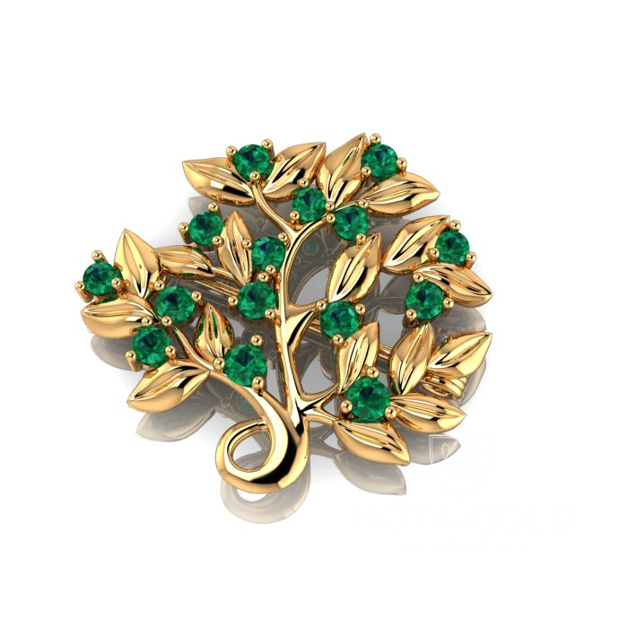 Брошь Дерево жизни из жёлтого золота с изумрудами (Вес: 8 гр.)