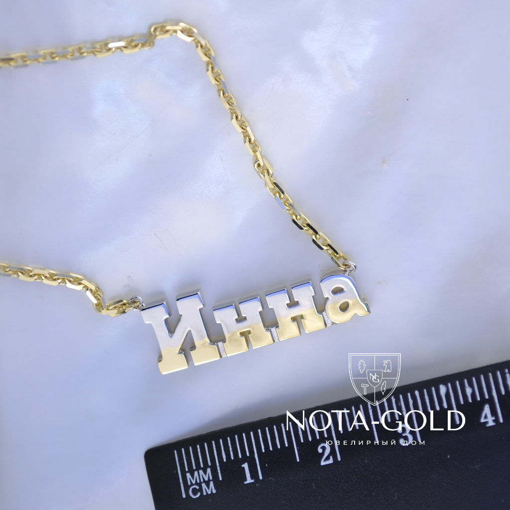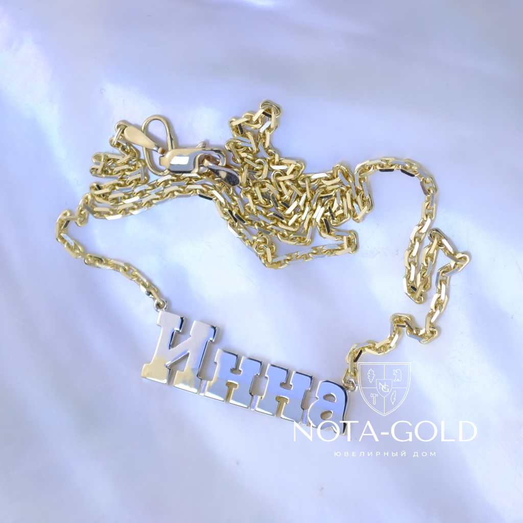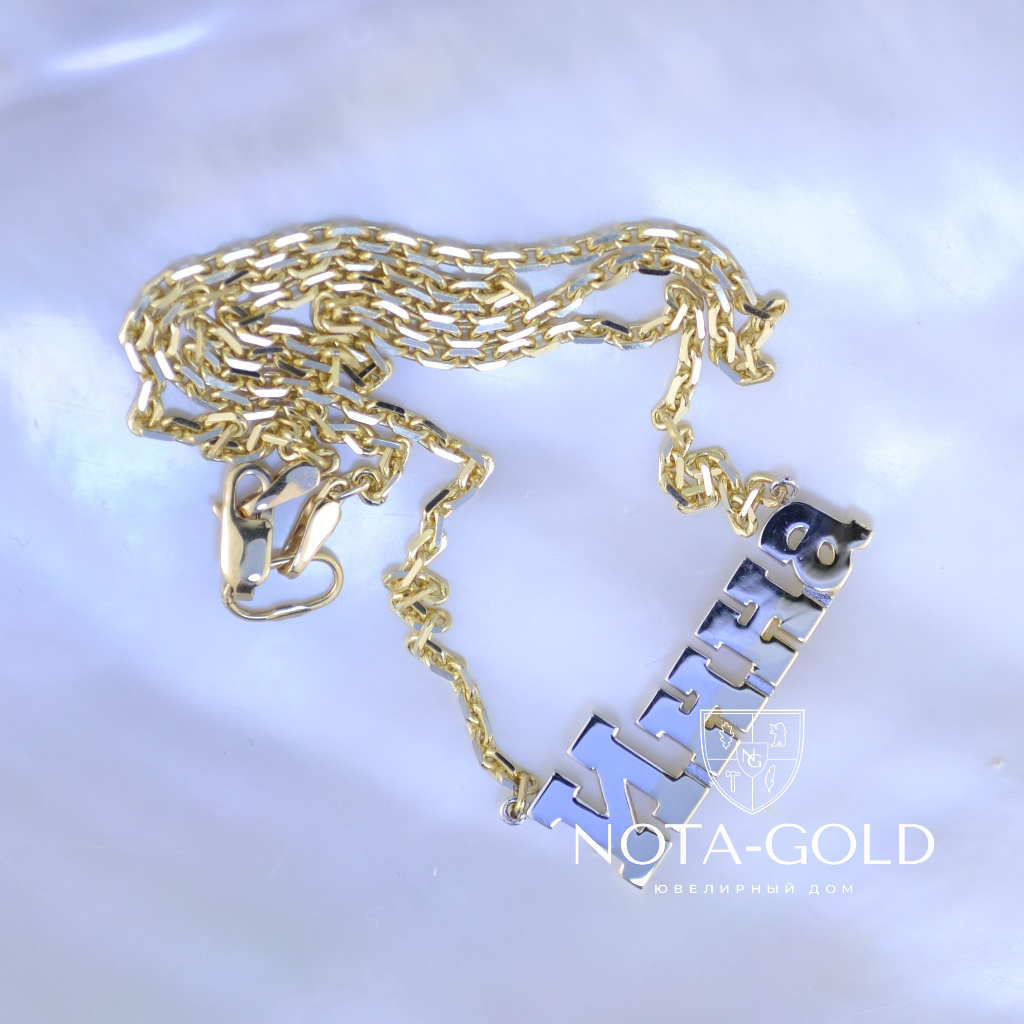 Подвеска с именем на цепочке из красно-белого золота (Вес: 9 гр.)