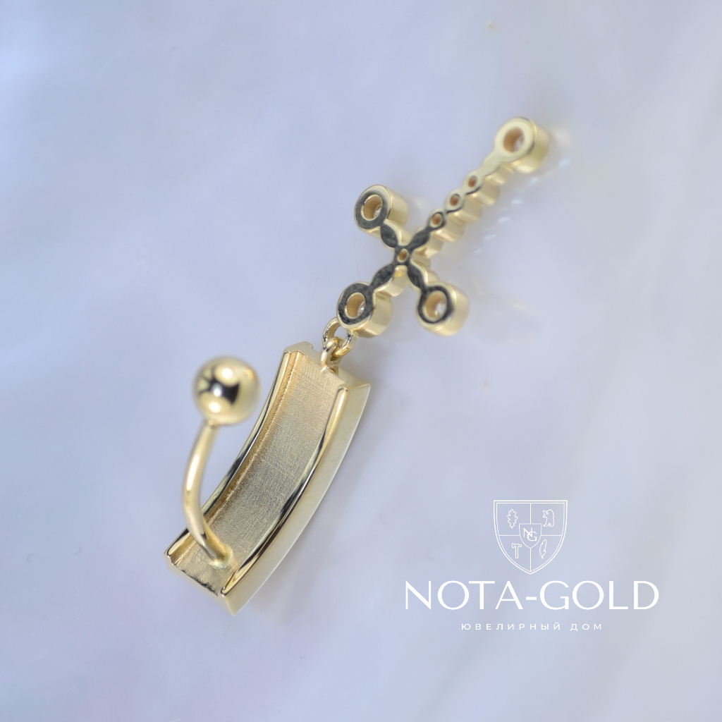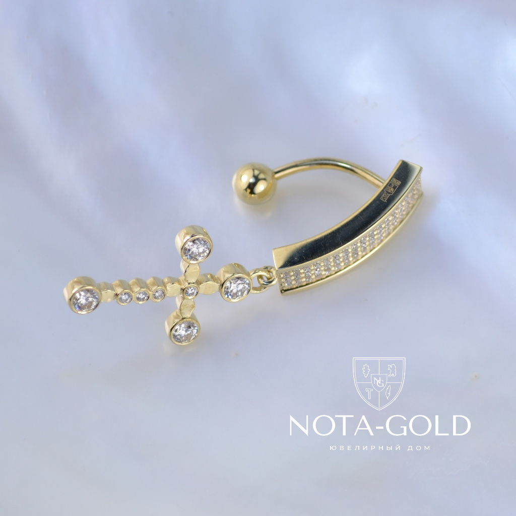 Золотой пирсинг для пупка с крестиком и бриллиантами (Вес 5,5 г.)