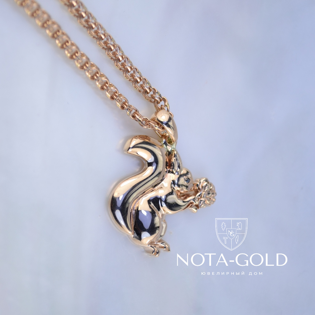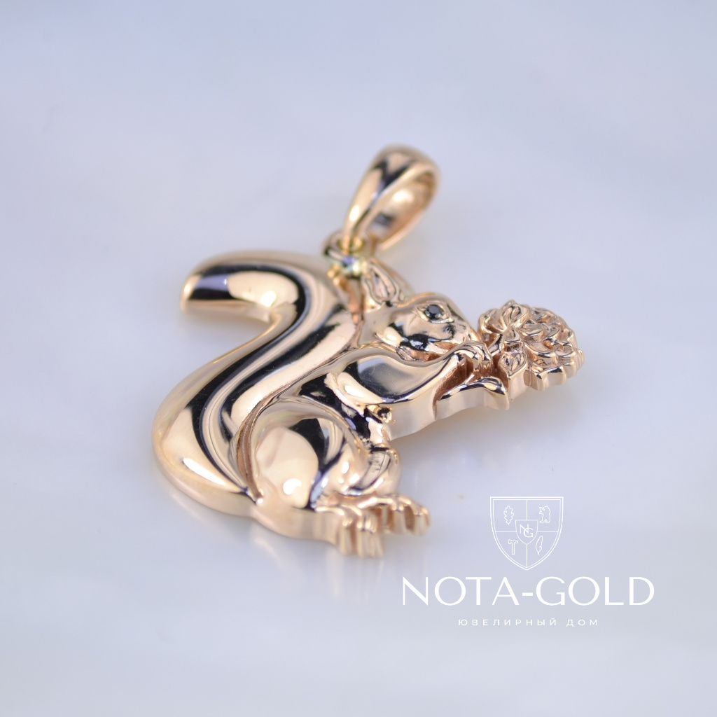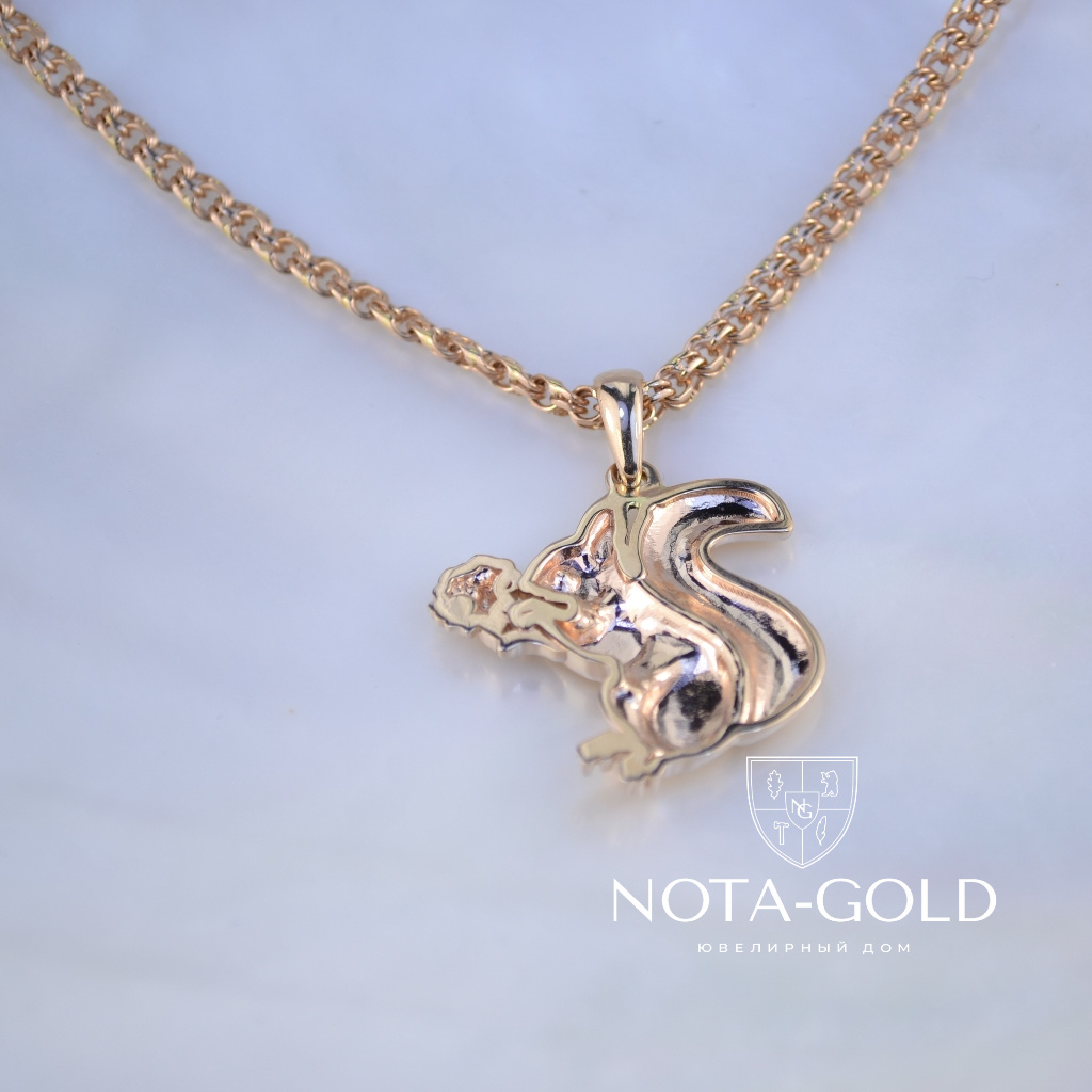 Оригинальная подвеска Белка из красного золота с бриллиантом (Вес: 5,5 гр.)