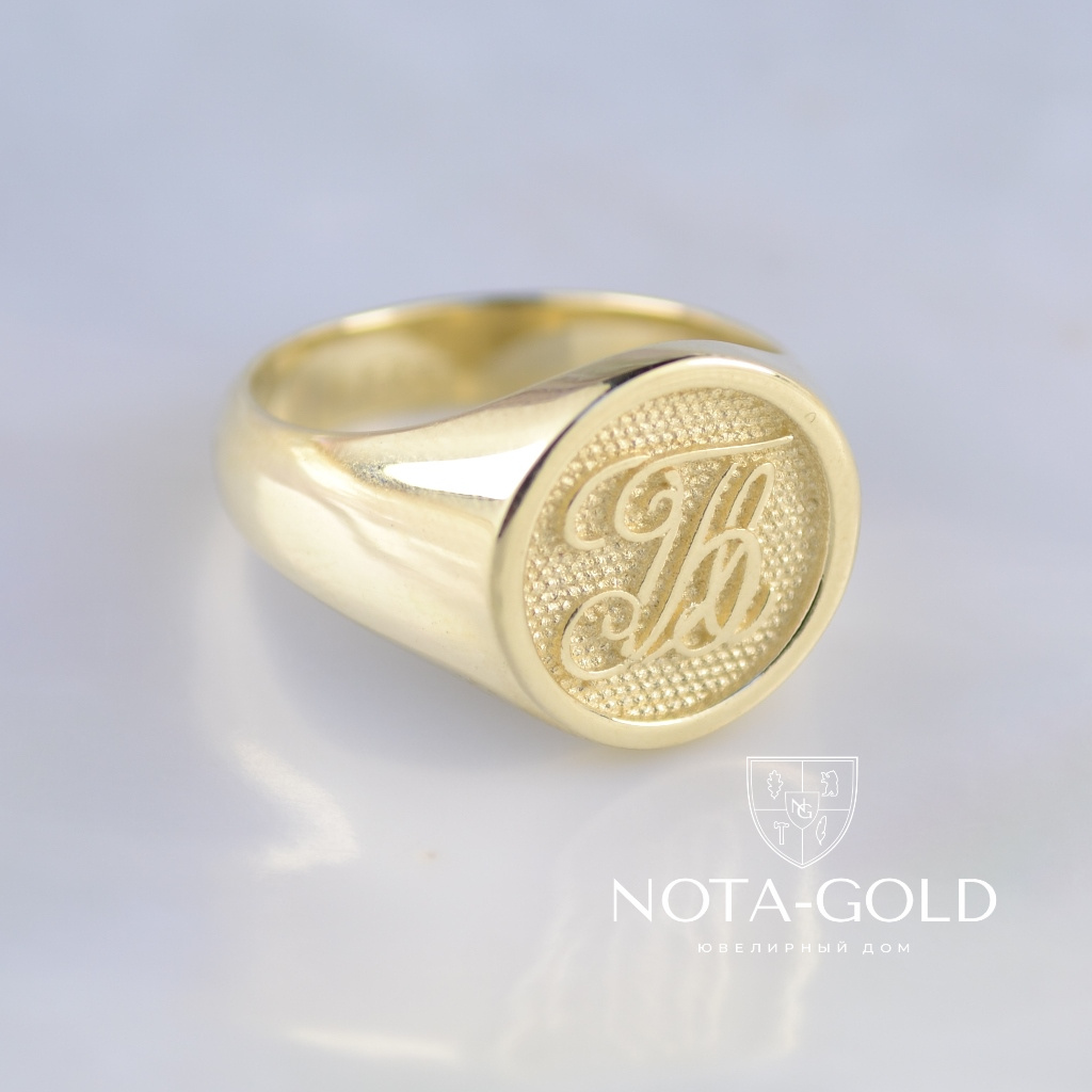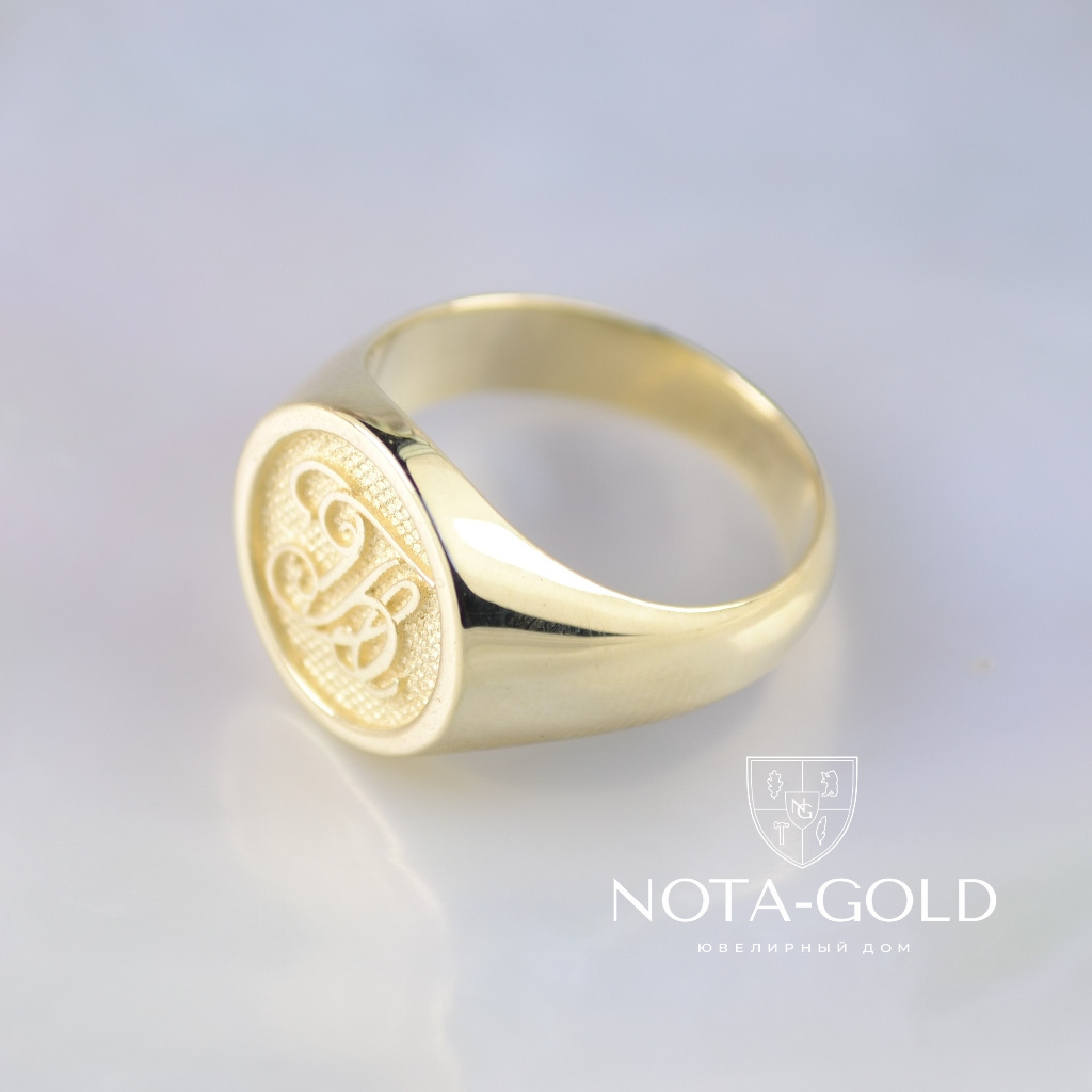 Мужское кольцо-печатка из жёлтого золота с инициалами (Вес: 8,5 гр.)