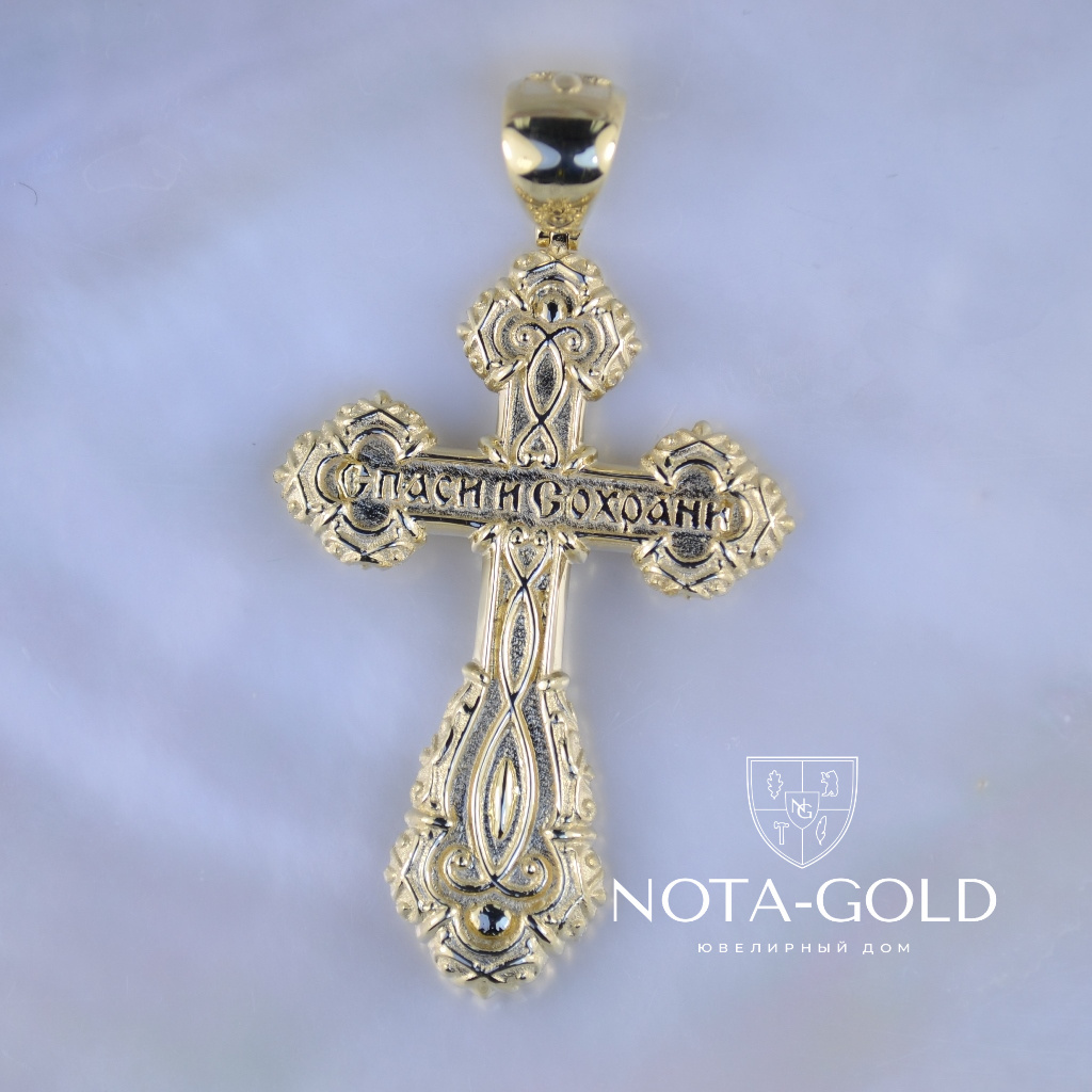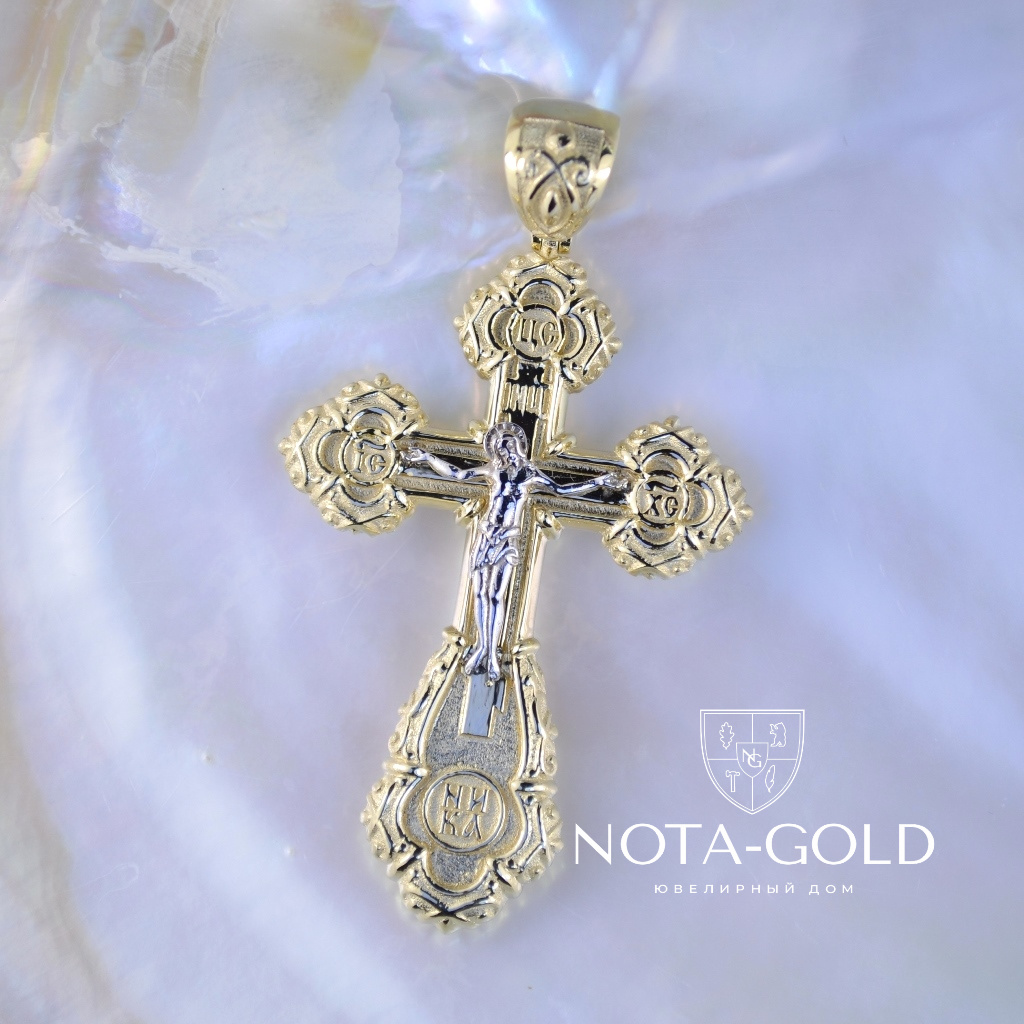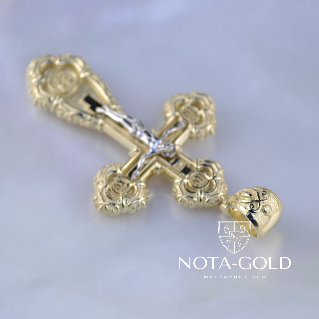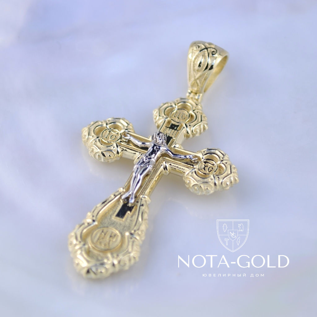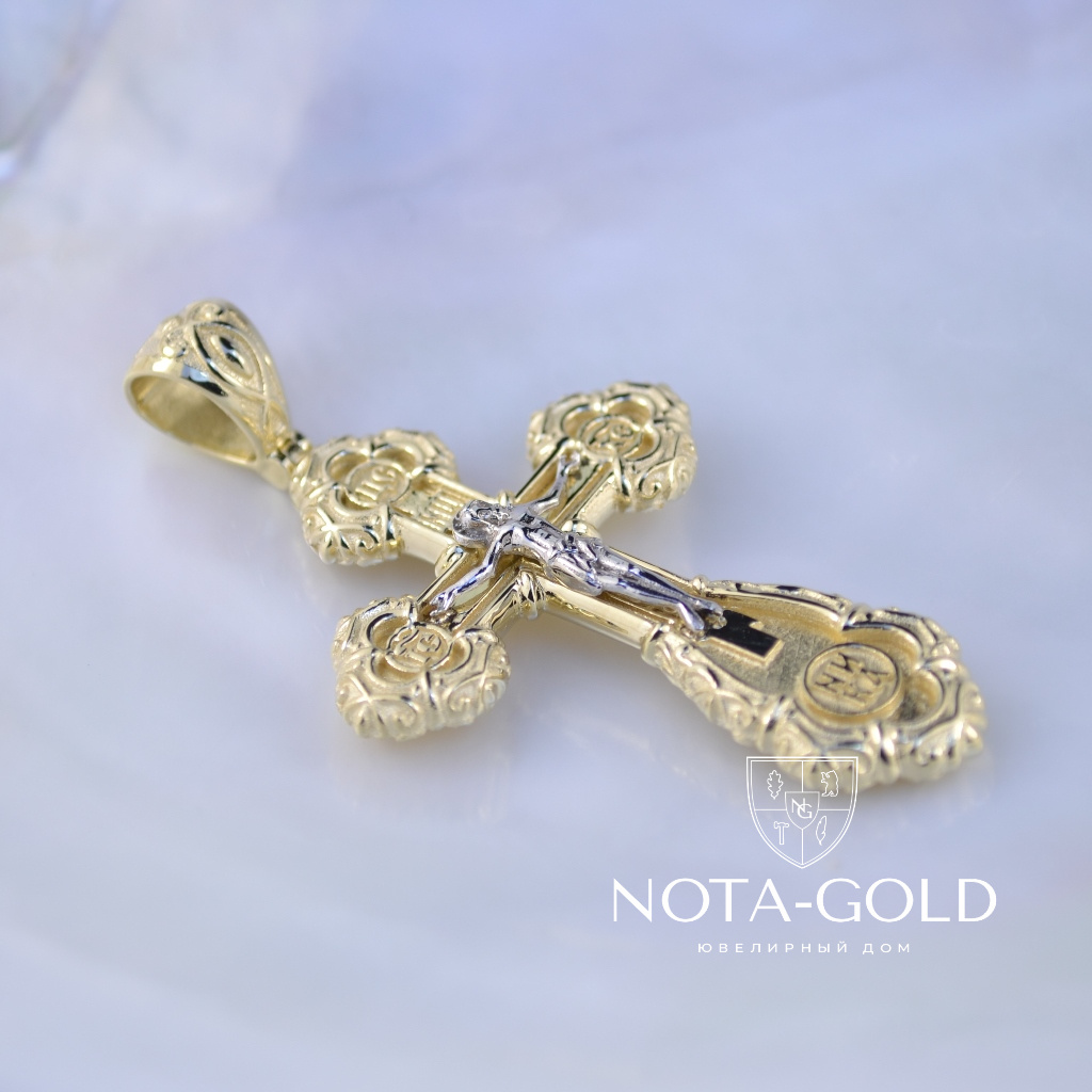Двухцветный ажурный мужской крест из жёлто-белого золота (Вес 17,5 гр.)