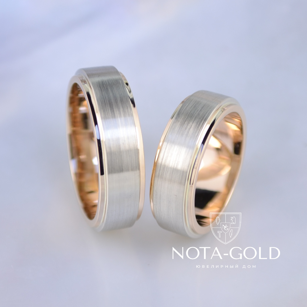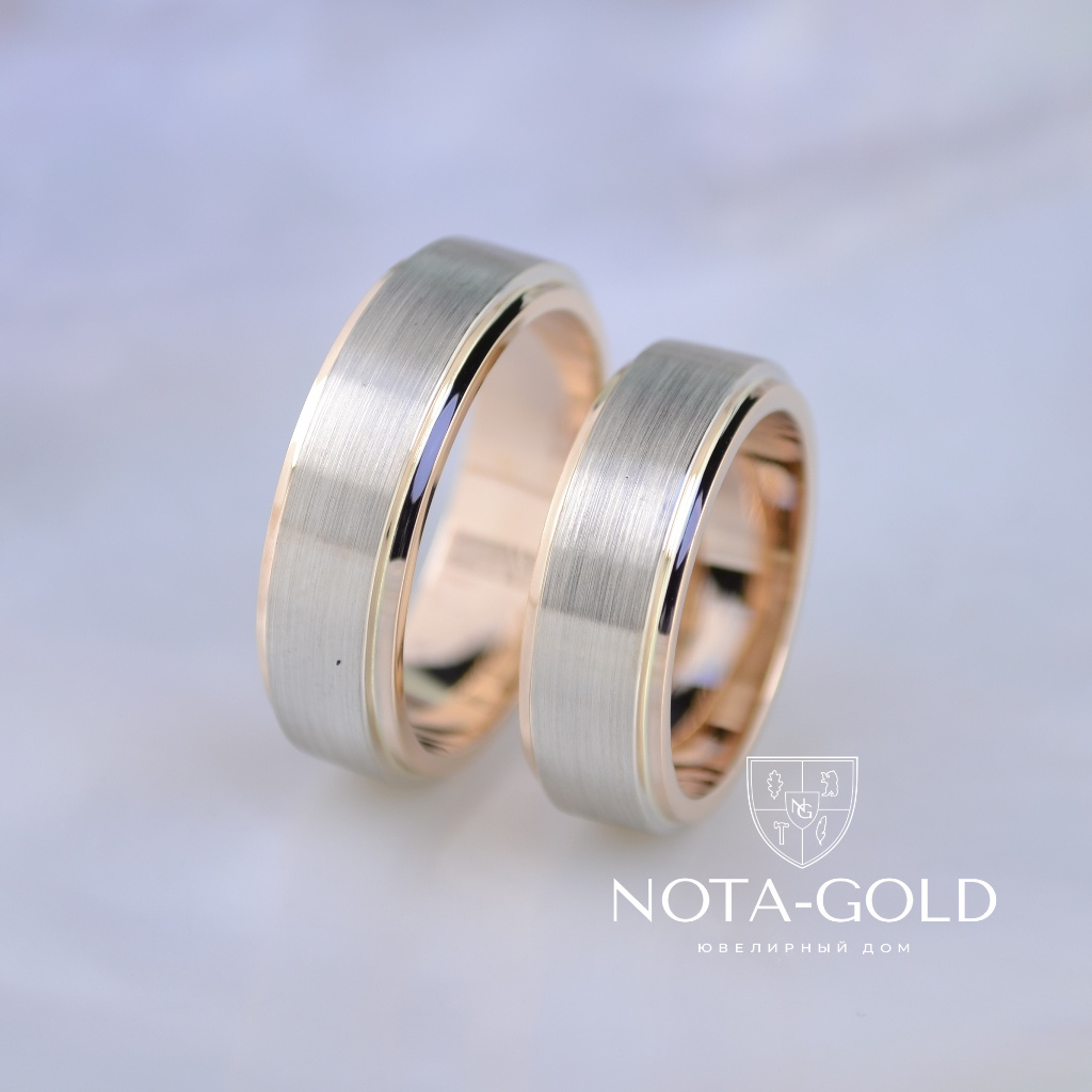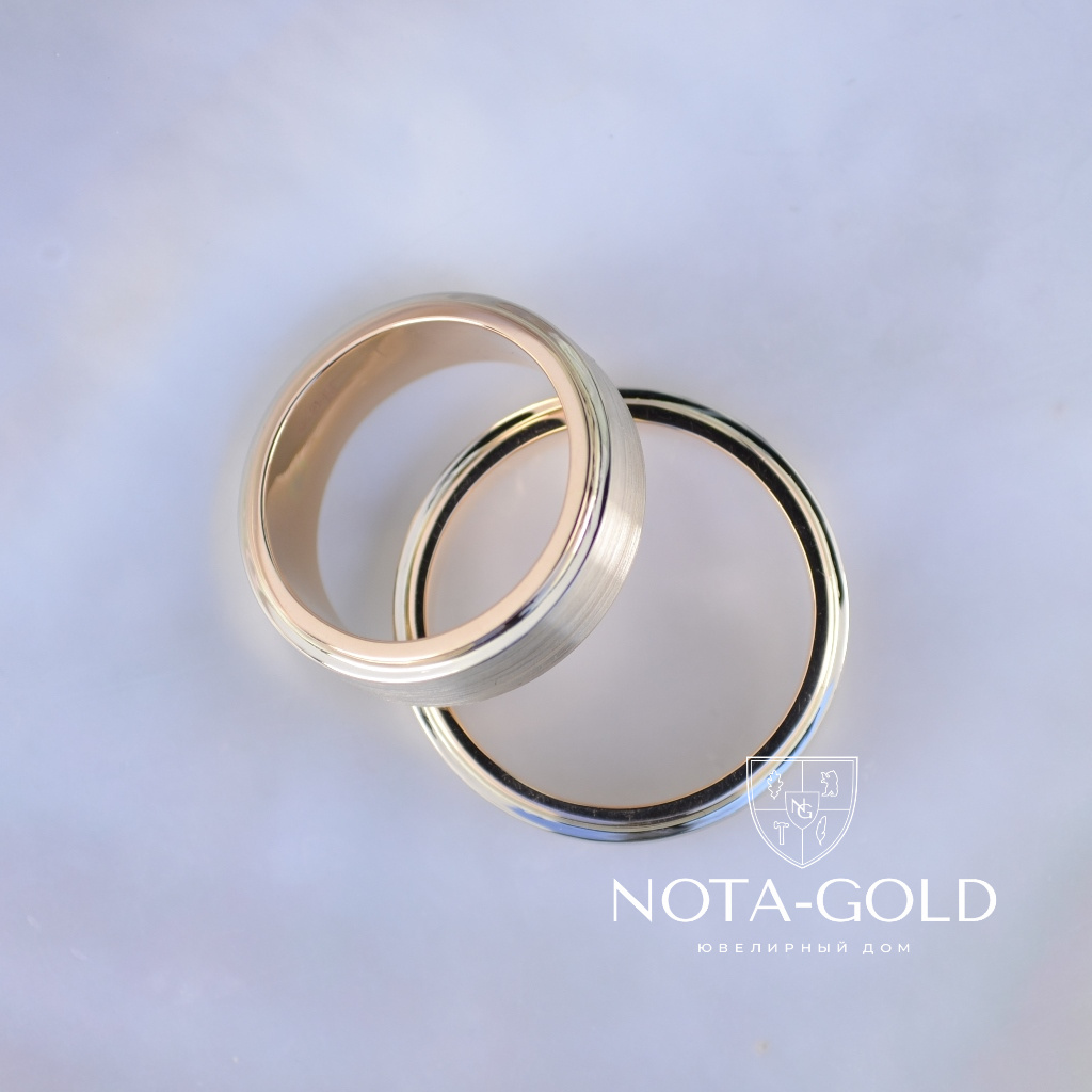 Матовые обручальные кольца из красно-белого золота с шероховатой поверхностью (Вес пары: 17,5 гр.)