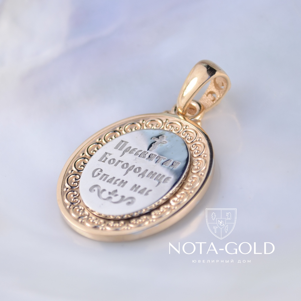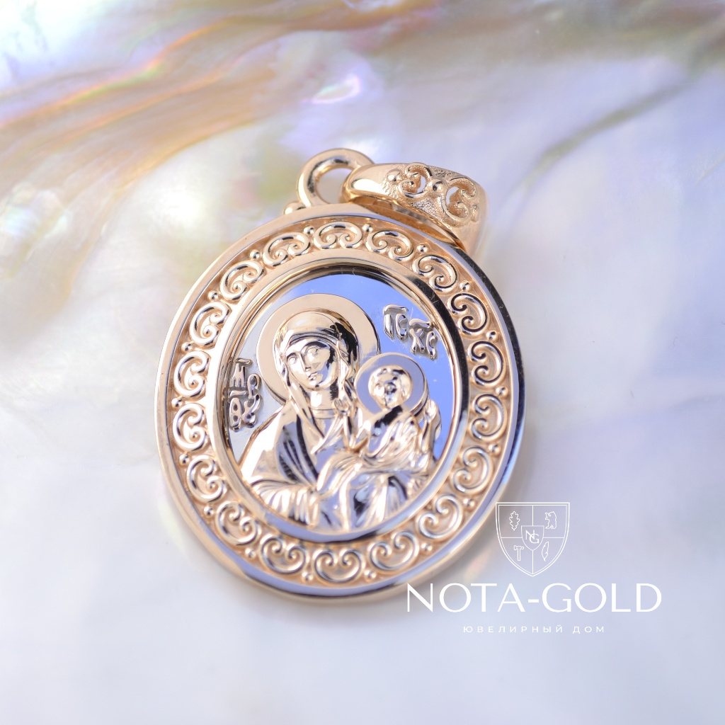 Нательная золотая иконка-образок Божией Матери Нечаянная Радость (Вес: 14,5 гр.)