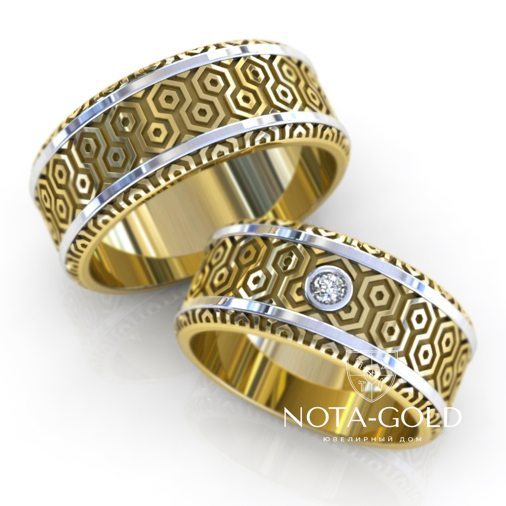 Обручальные кольца Генератор в жёлто-белом золоте с бриллиантом (Вес пары 16,3 гр.)