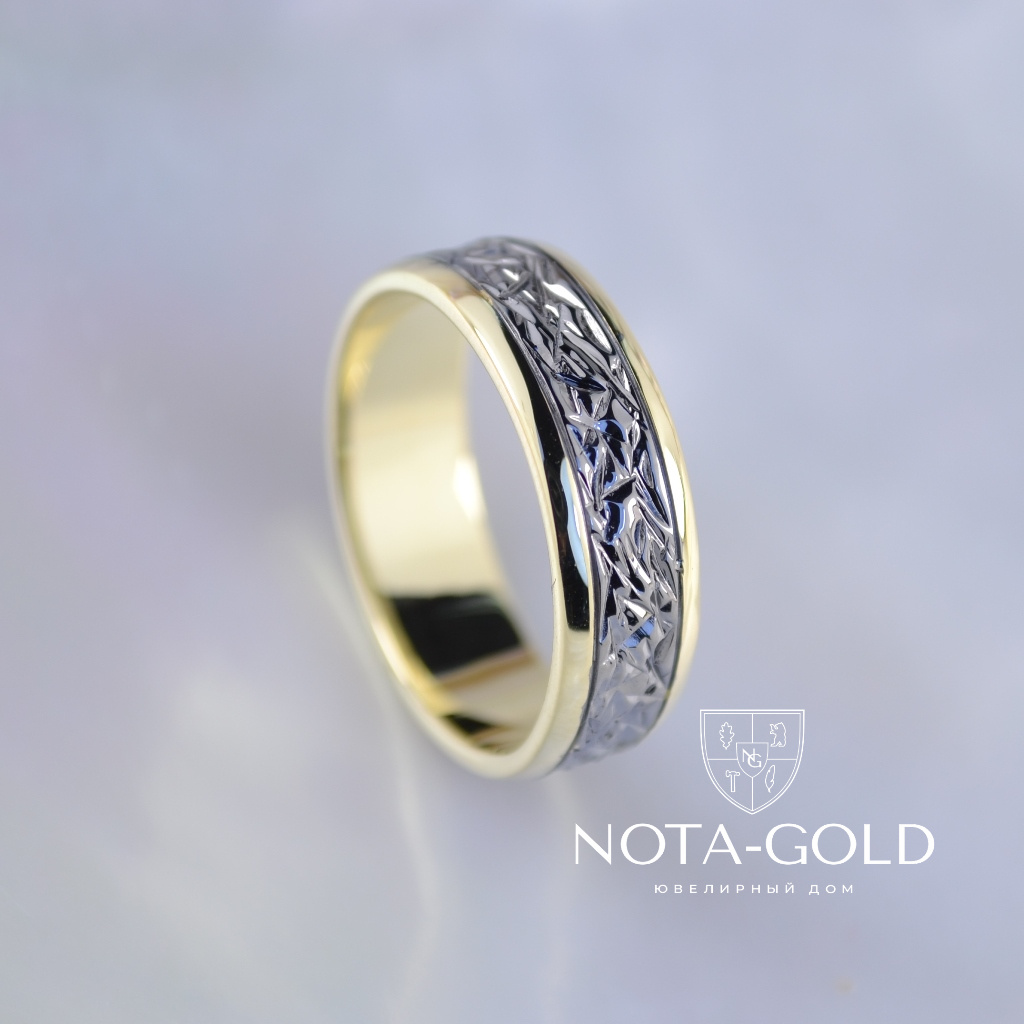 Необычное кольцо из золота с чернением и рубленой текстурой (Вес: 6,5 гр.)