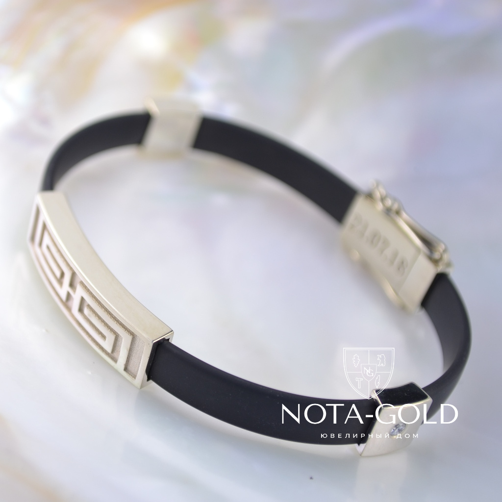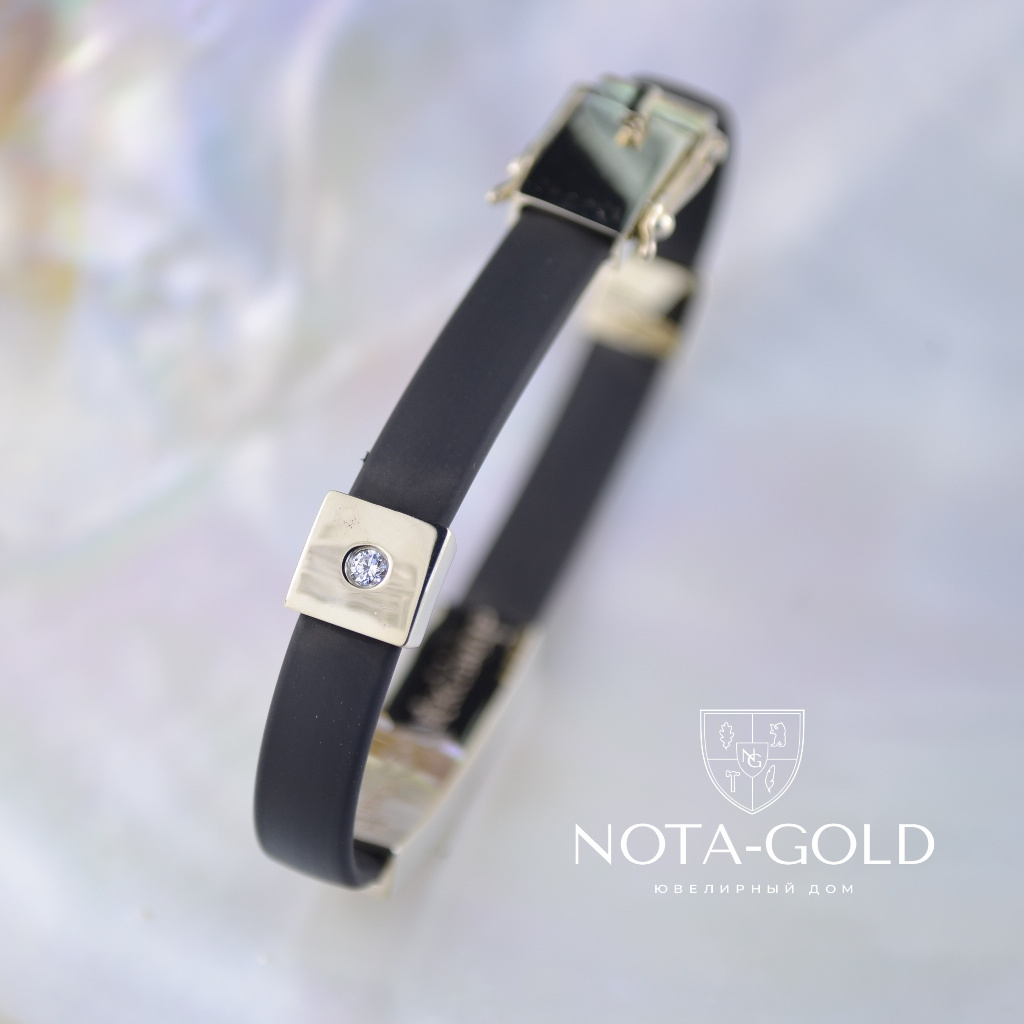 Женский каучуковый браслет с золотыми вставками и гравировкой (Вес: 13,5 гр.)
