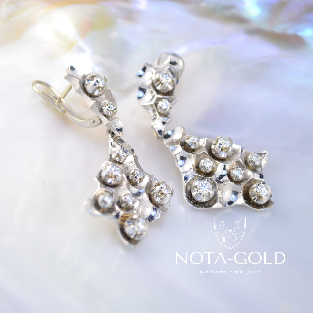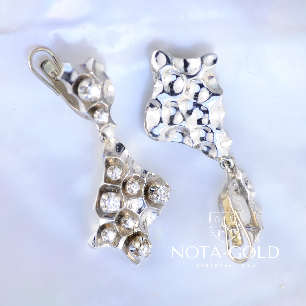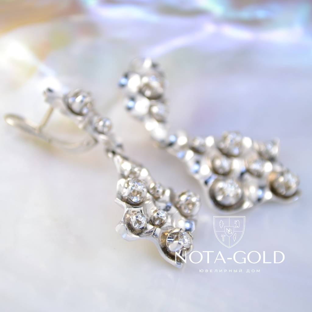 Серьги Соты из белого золота с бриллиантами 0,90ct (Вес: 19,5 гр.)