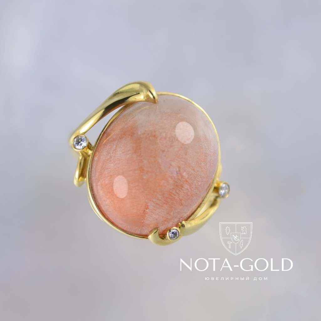 Женский перстень с крупным розовым кварцем 21,75ct и бриллиантами (Вес: 12,5 гр.)