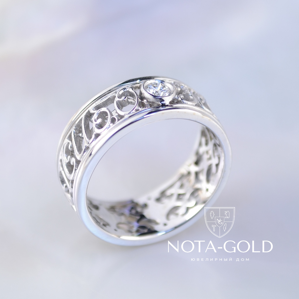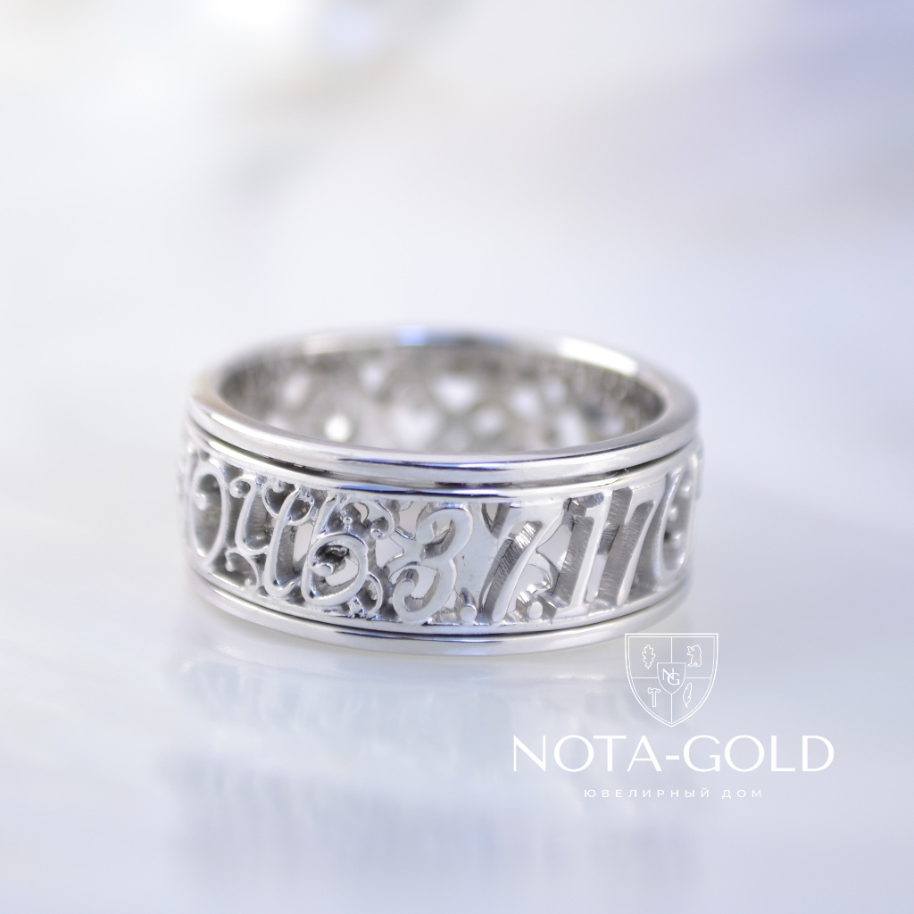 Кольцо на рождение девочки Спасибо за дочь из белого золота с бриллиантом (Вес: 4,5 гр.)