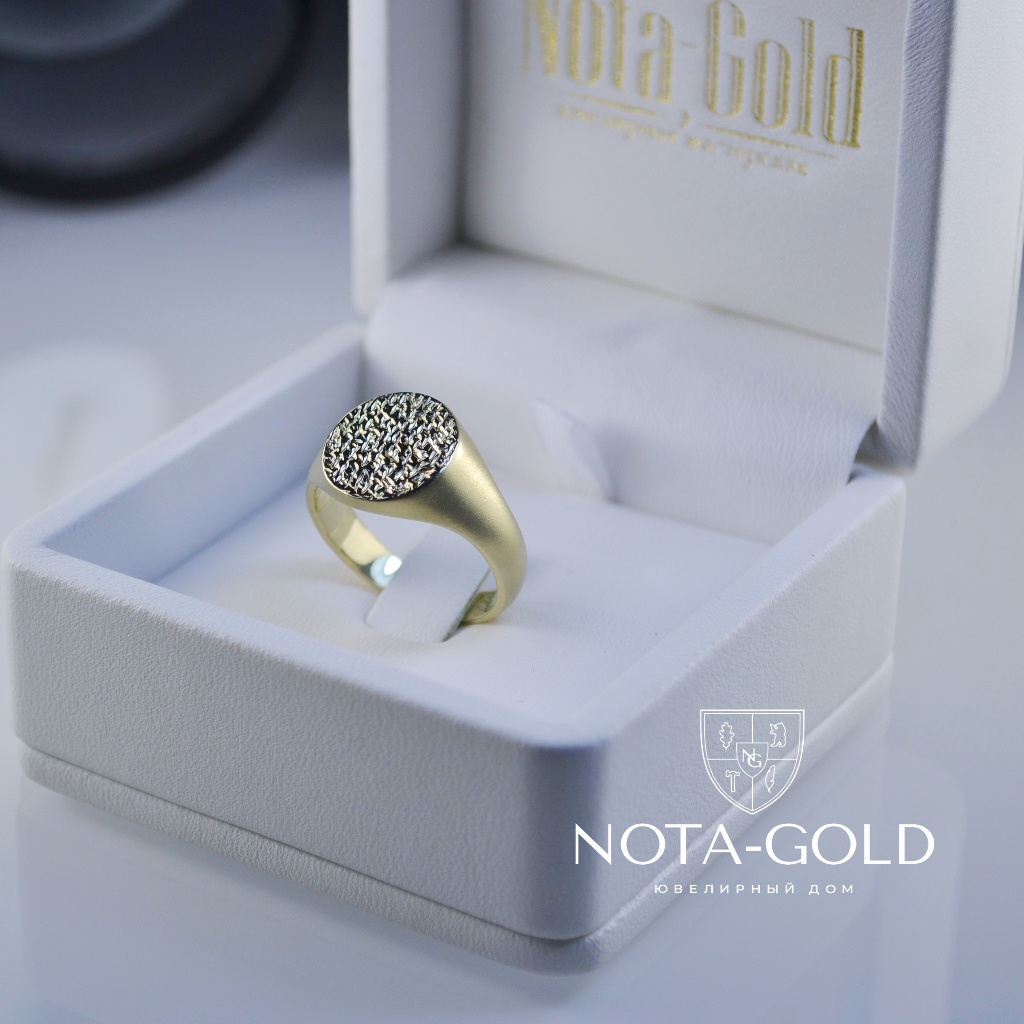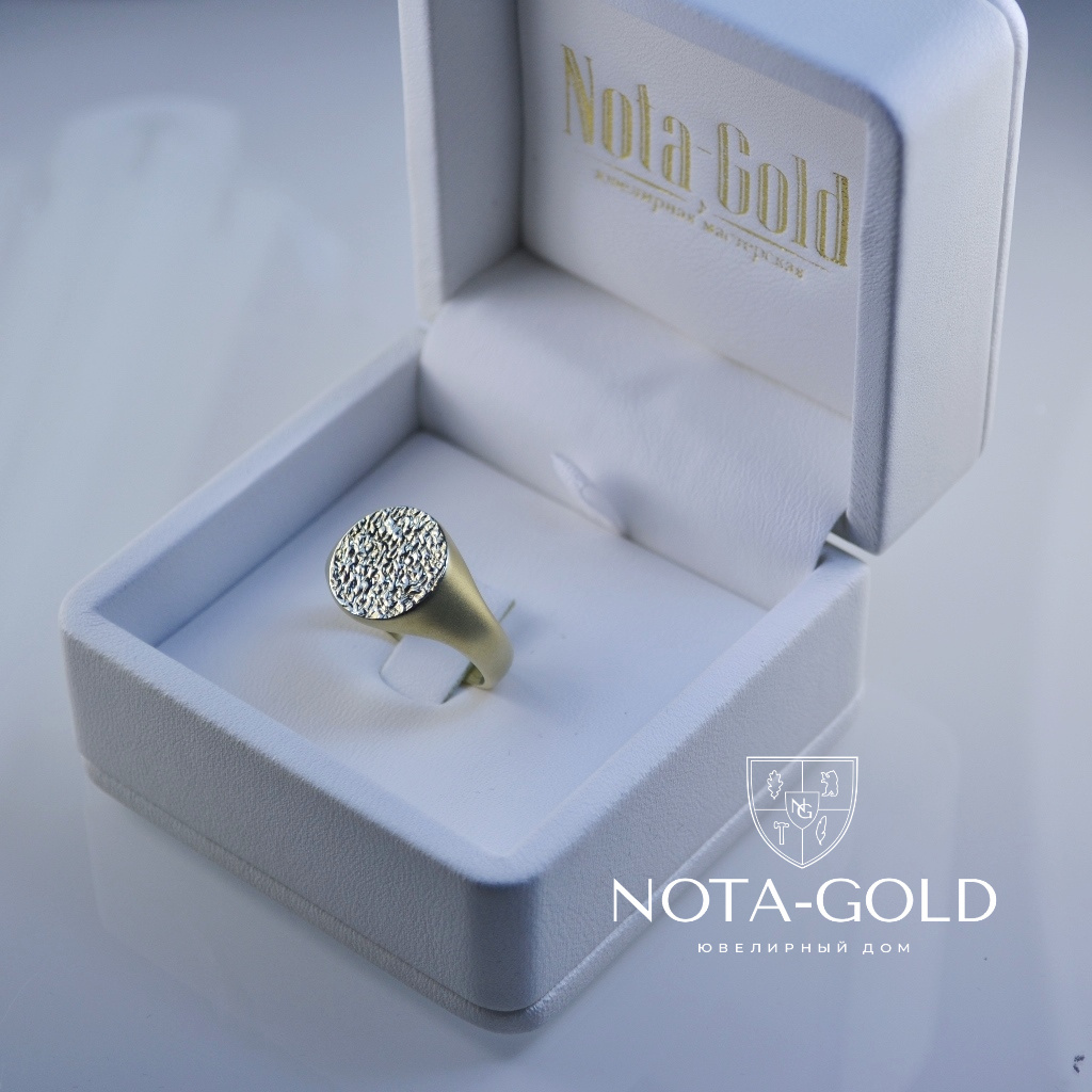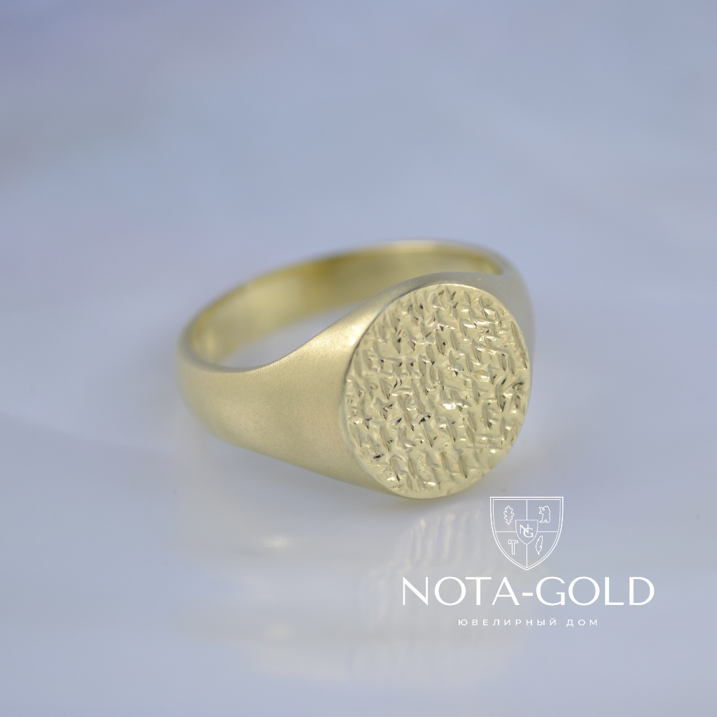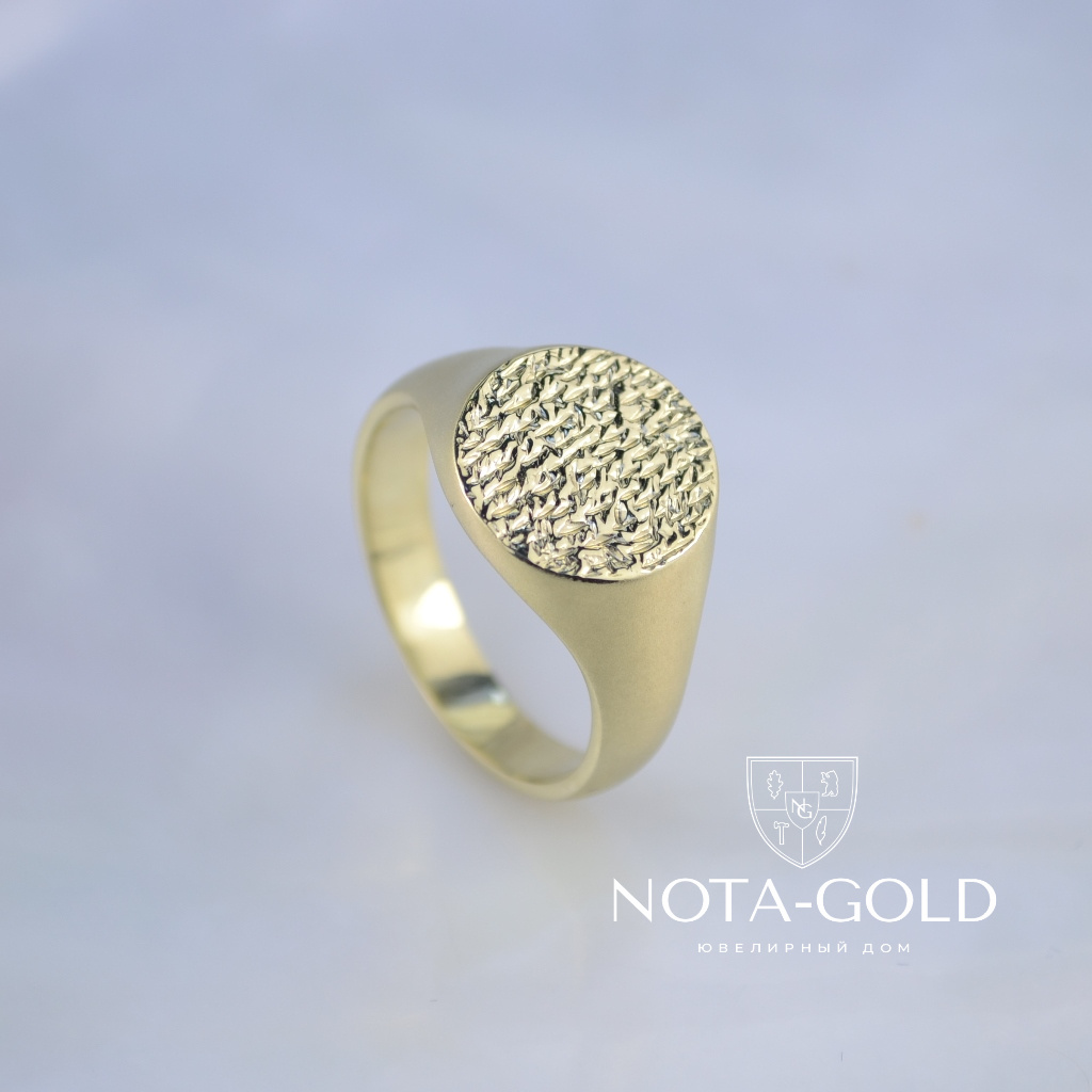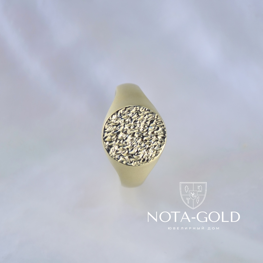 Мужское кольцо-печатка из матового золота с рельефной площадкой (Вес: 10 гр.)