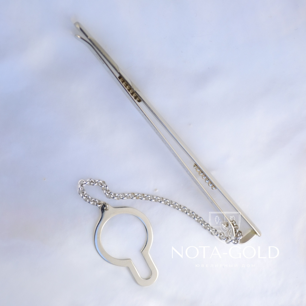Зажим для галстука из белого золота с гравировкой в подарок внуку (Вес: 8 гр.)