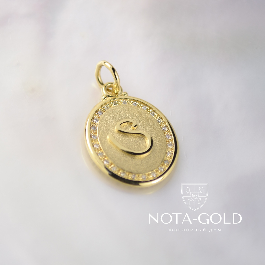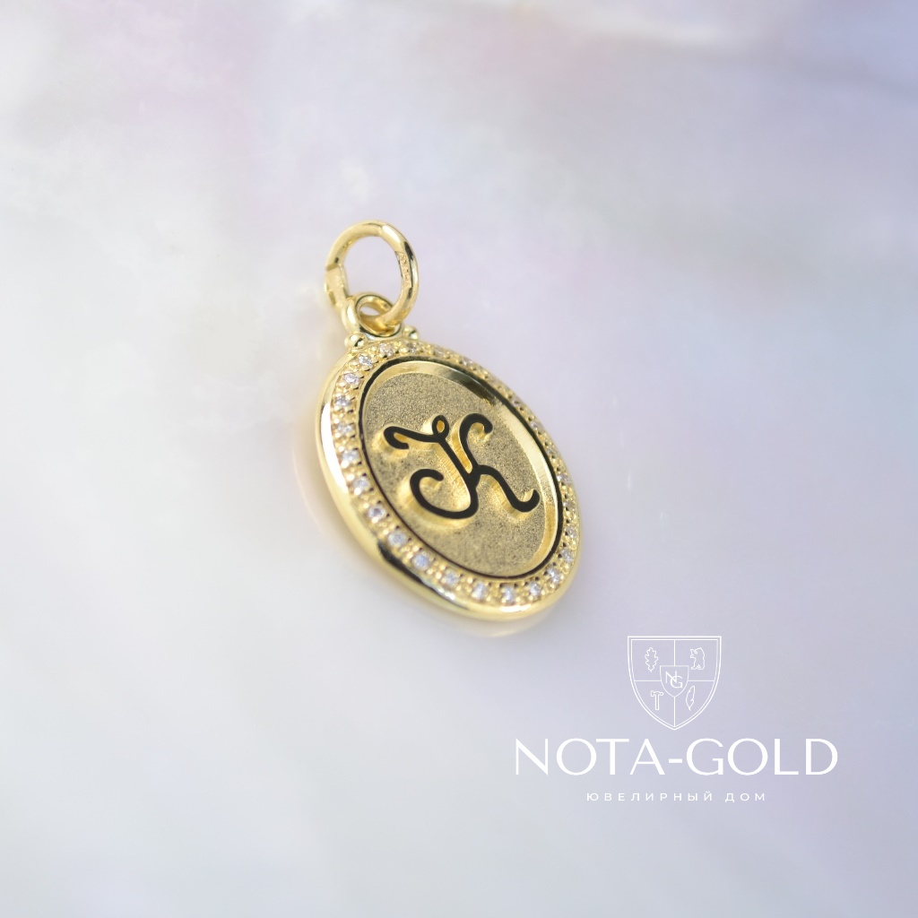 Двусторонняя подвеска из жёлтого золота с инициалами и бриллиантами (Вес: 3 гр.)