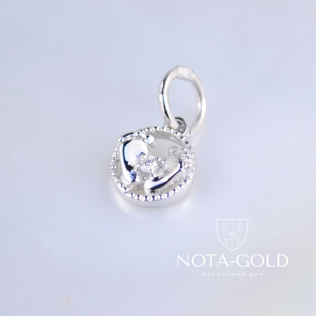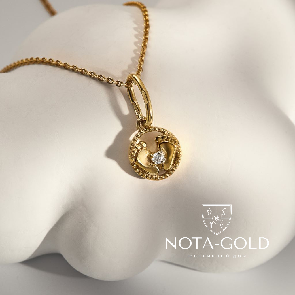 Золотая подвеска с бриллиантом и ножками из белого золота (Вес: 1 гр.)