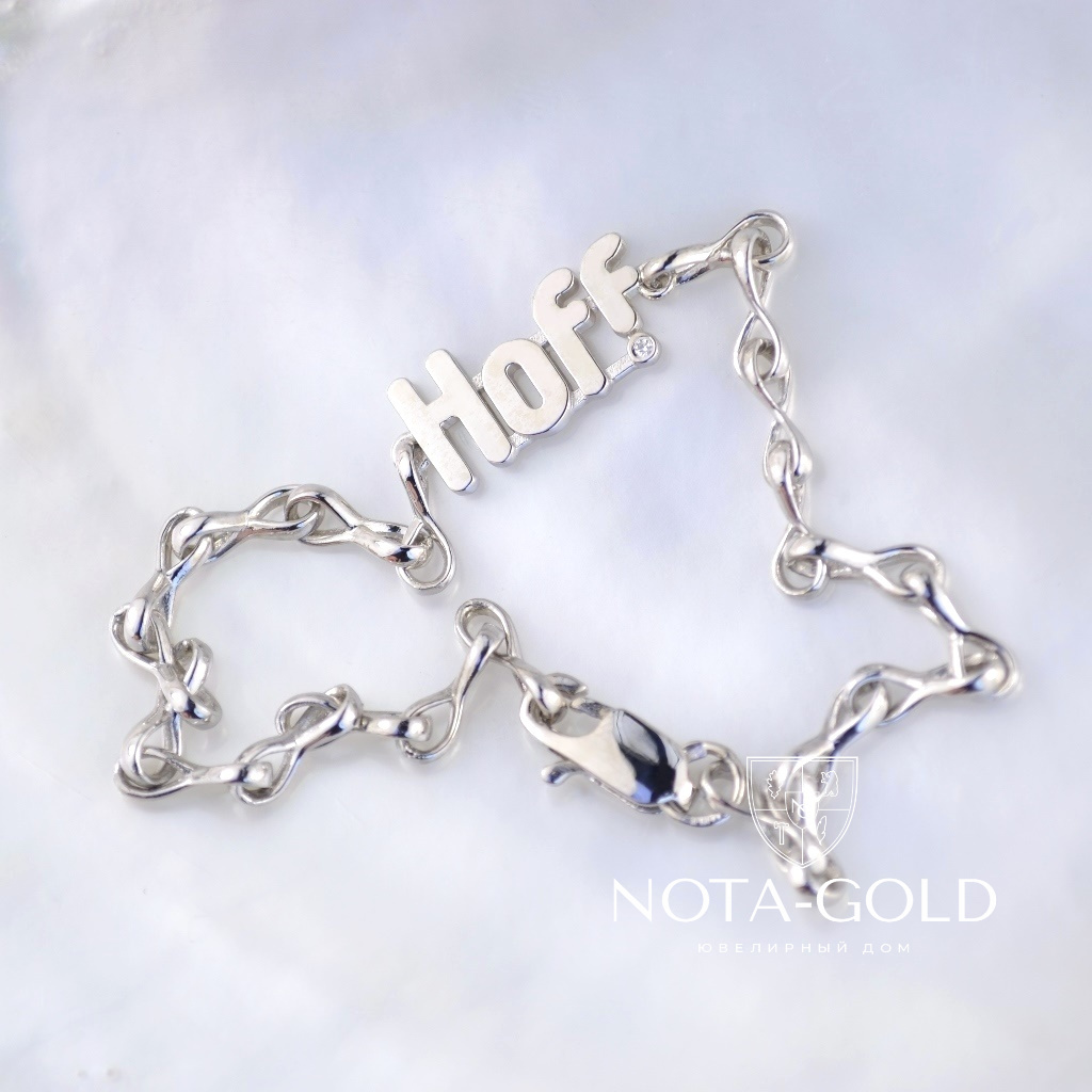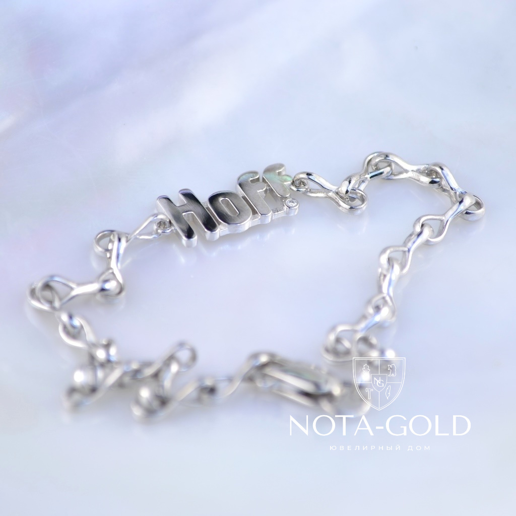 Браслеты из белого золота с бриллиантами и логотипом гипермаркета мебели Hoff