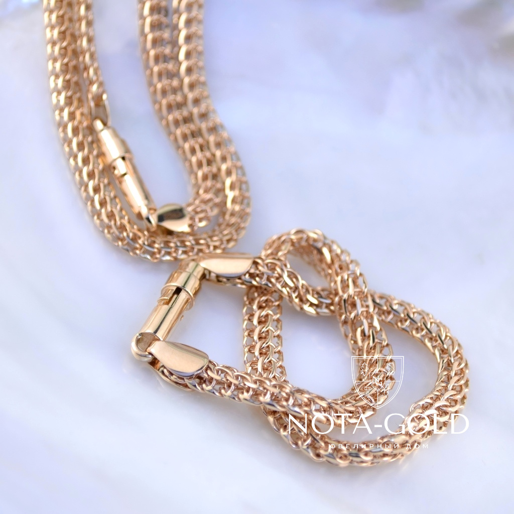 Мужской ювелирный комплект из красного золота цепь и браслет плетение Питон (Вес: 42,5 гр.)