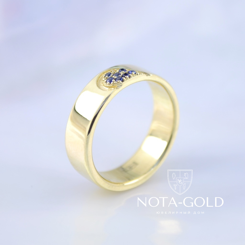 Мужское кольцо из жёлтого золота с сапфирами на заказ (Вес 5,5 гр.)