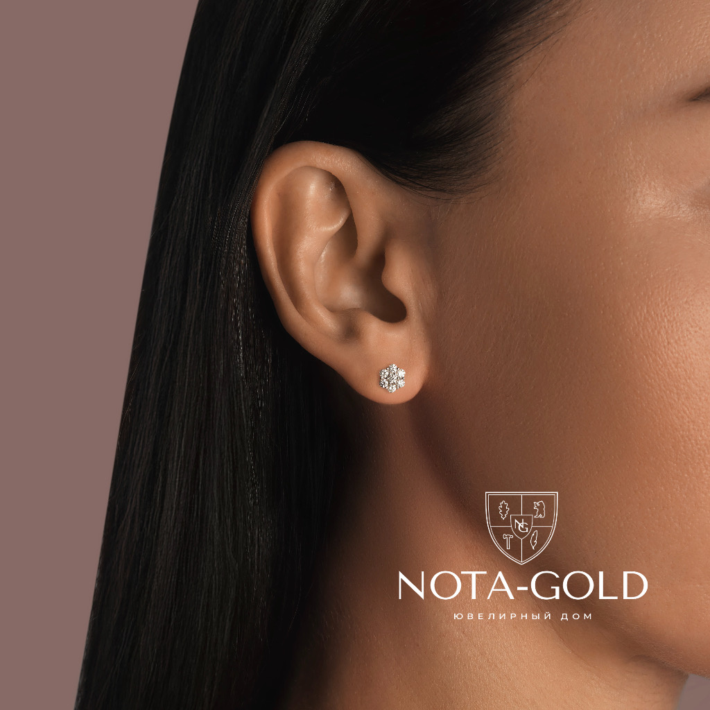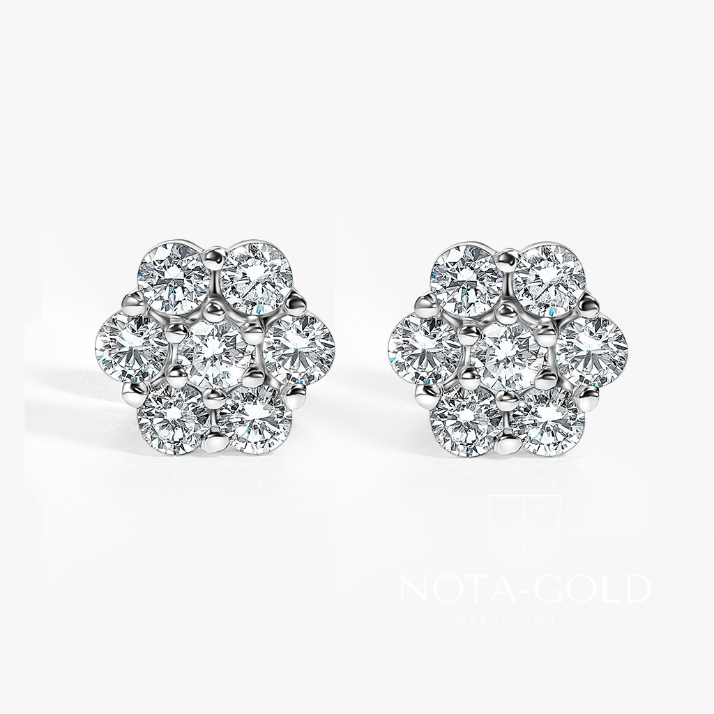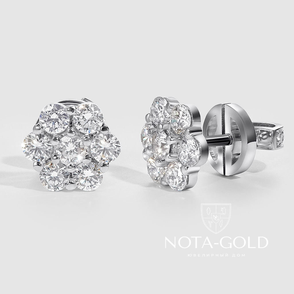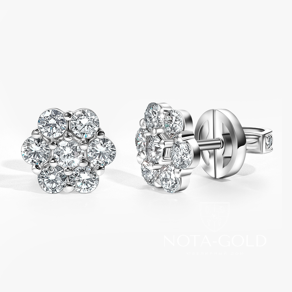 Золотые серьги-пусеты из белого золота с крупными бриллиантами (Вес: 3,5 гр.)