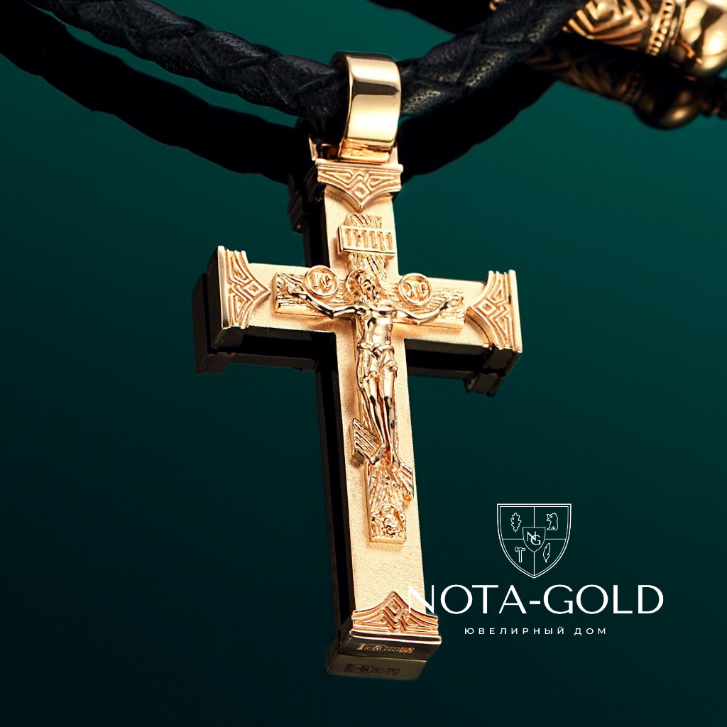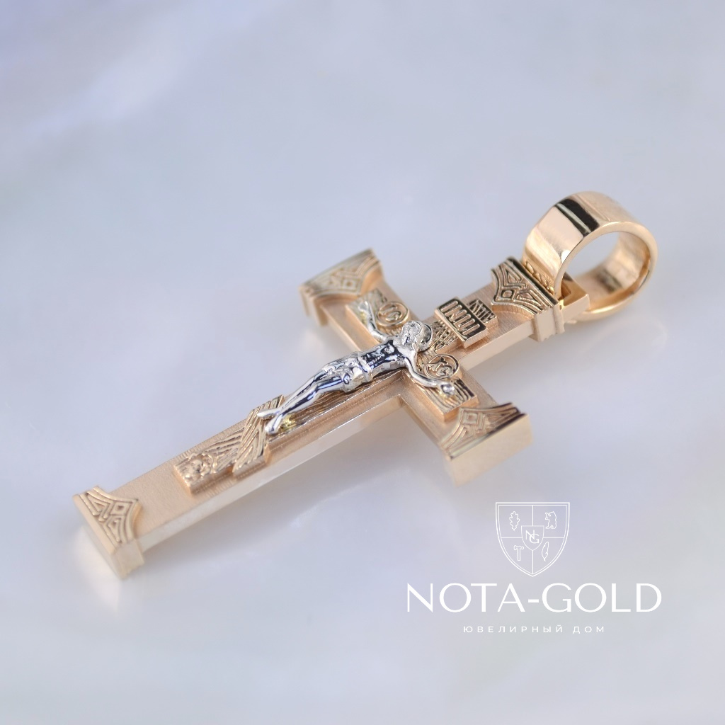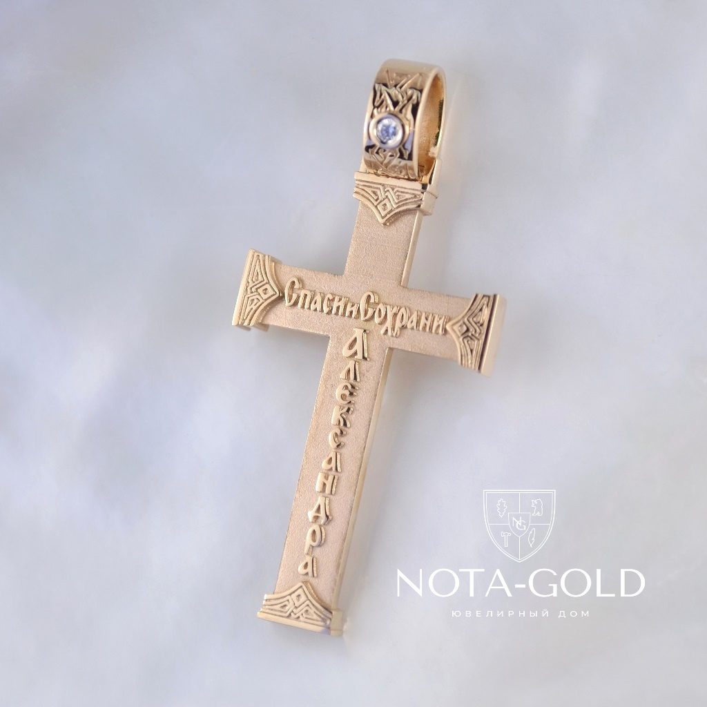Именной нательный крест из красно-белого золота с бриллиантом (Вес 10,5 гр.)