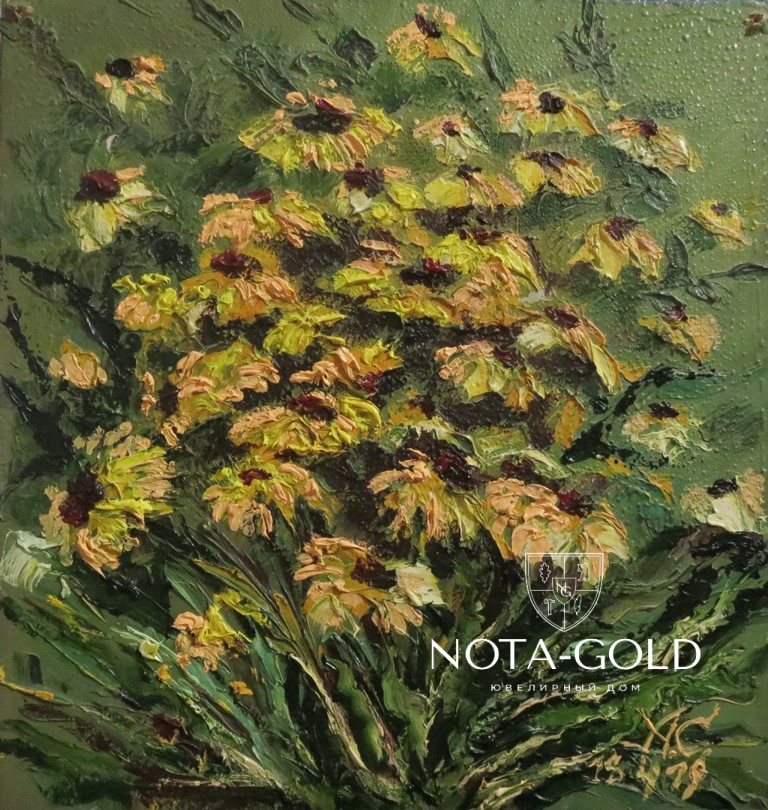 Картина маслом на холсте - Букет жёлтых цветов 32x33 см