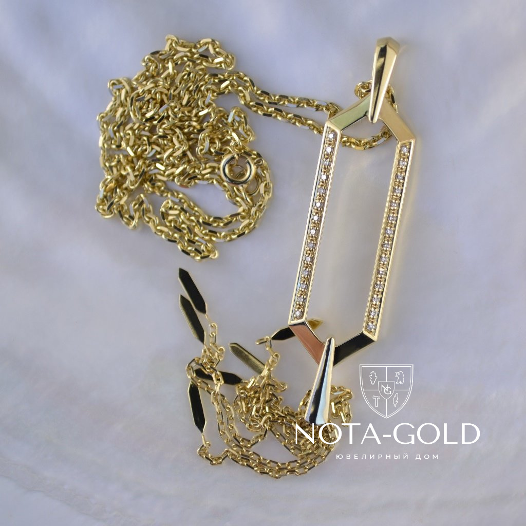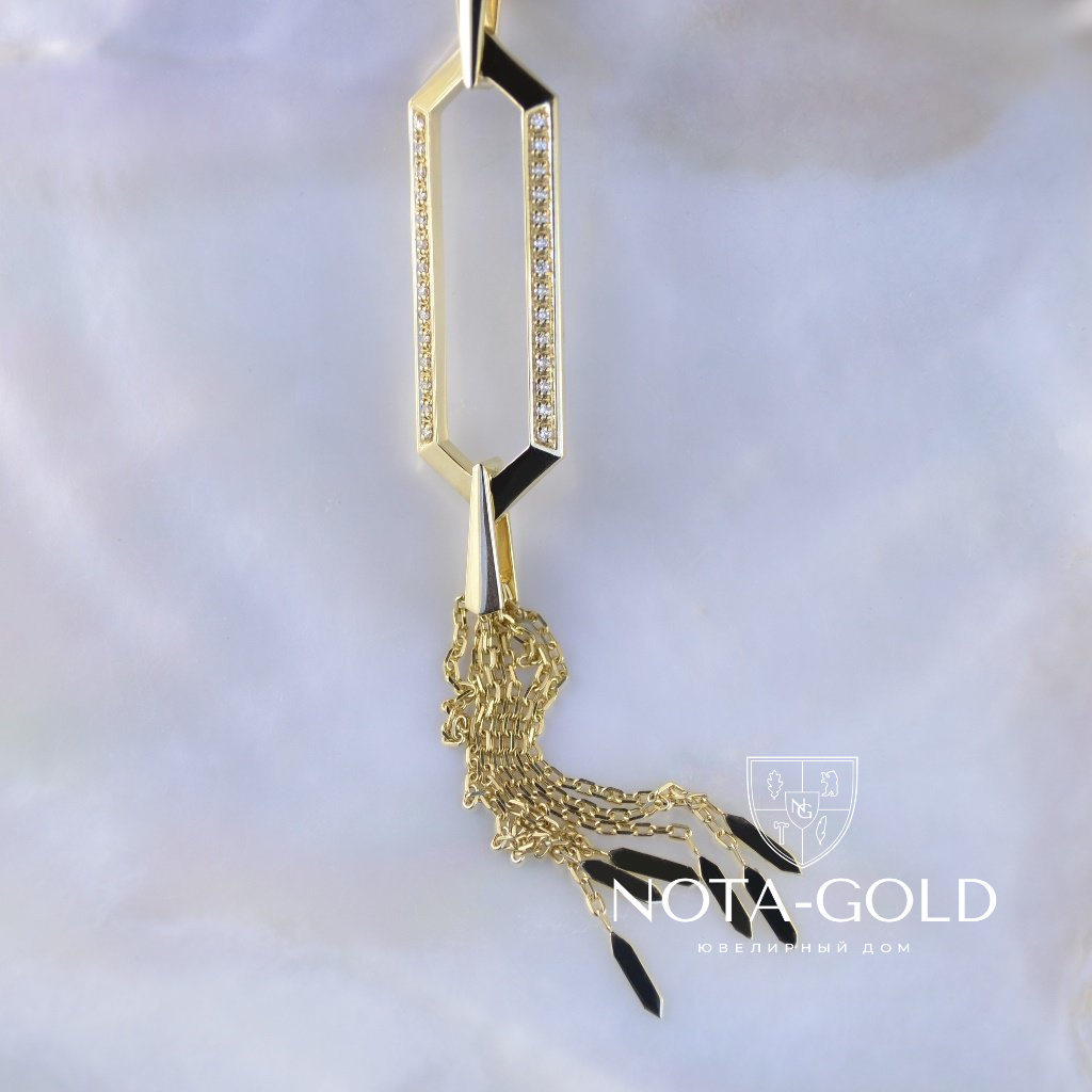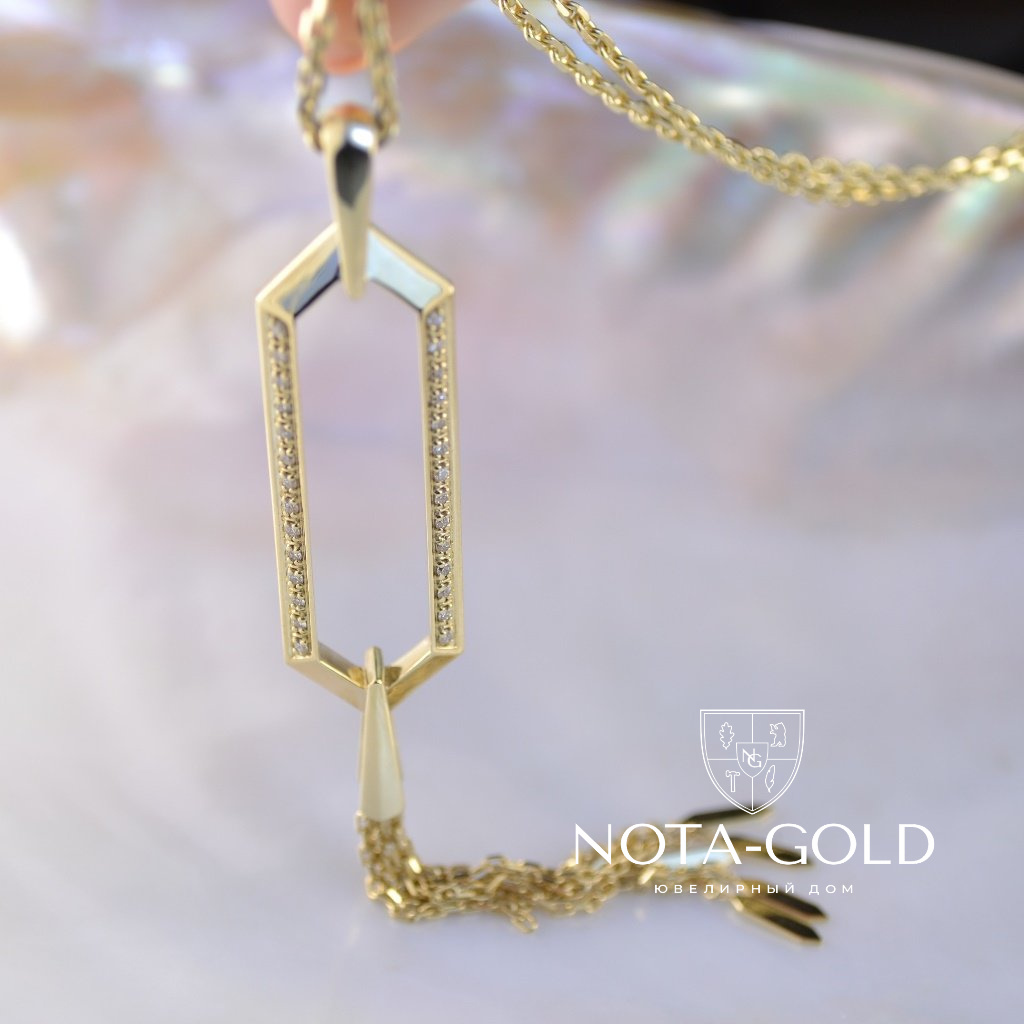 Золотая женская подвеска из жёлтого золота с цепочками и бриллиантами (Вес: 7,5 гр.)