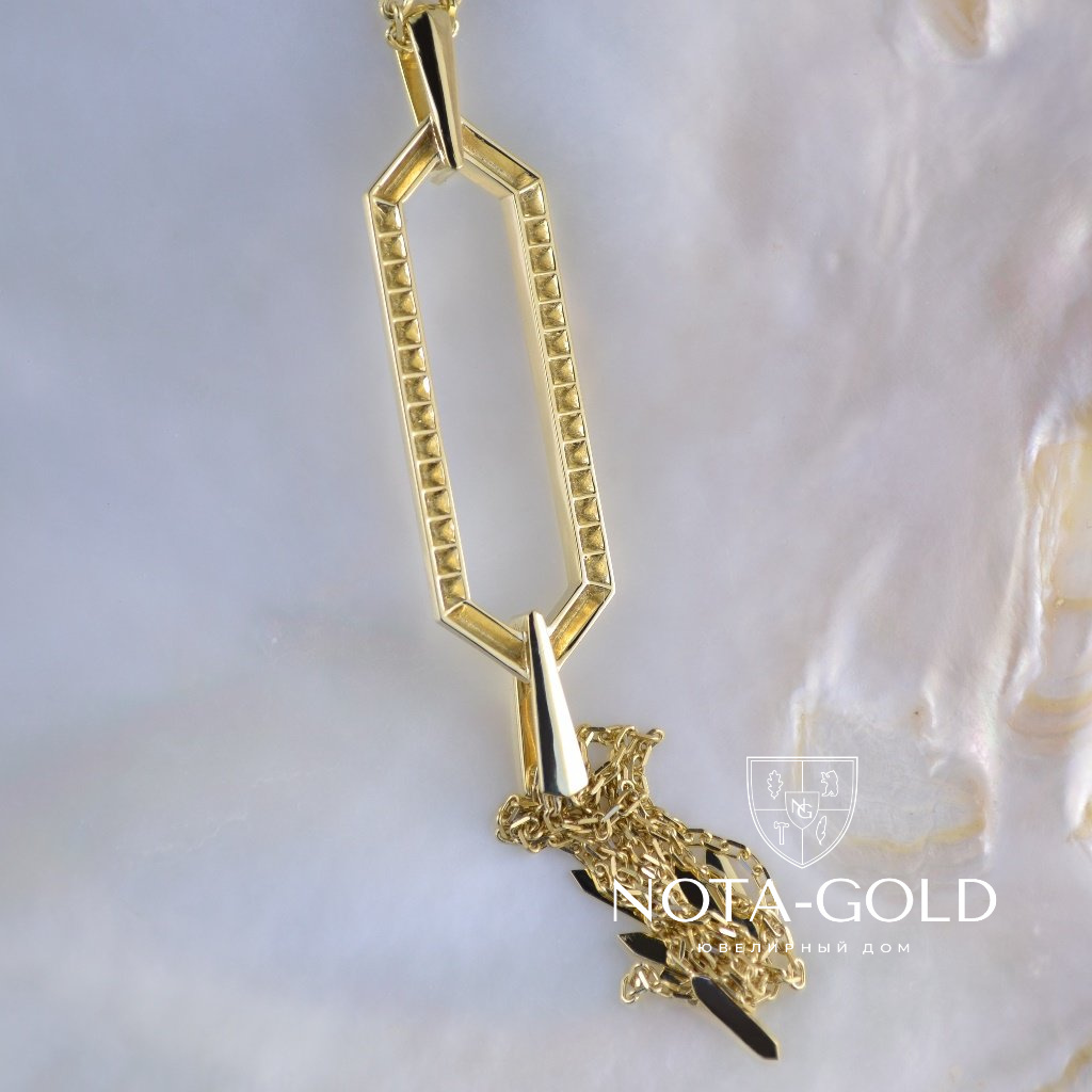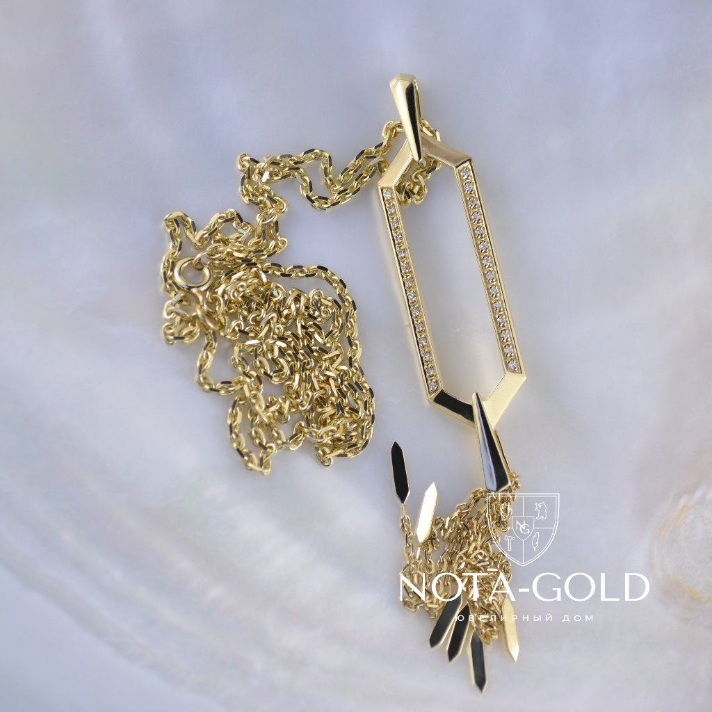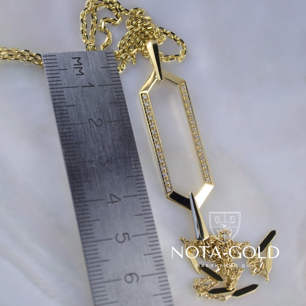 Золотая женская подвеска из жёлтого золота с цепочками и бриллиантами (Вес: 7,5 гр.)