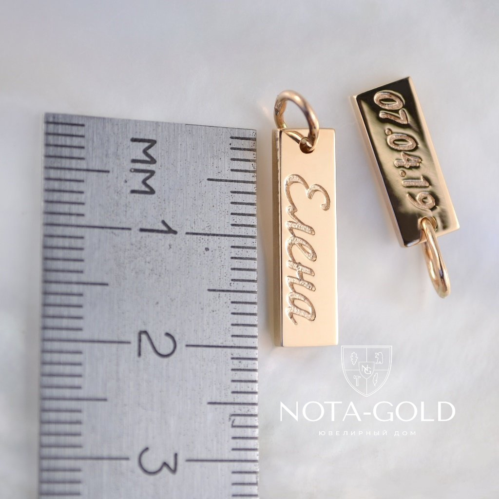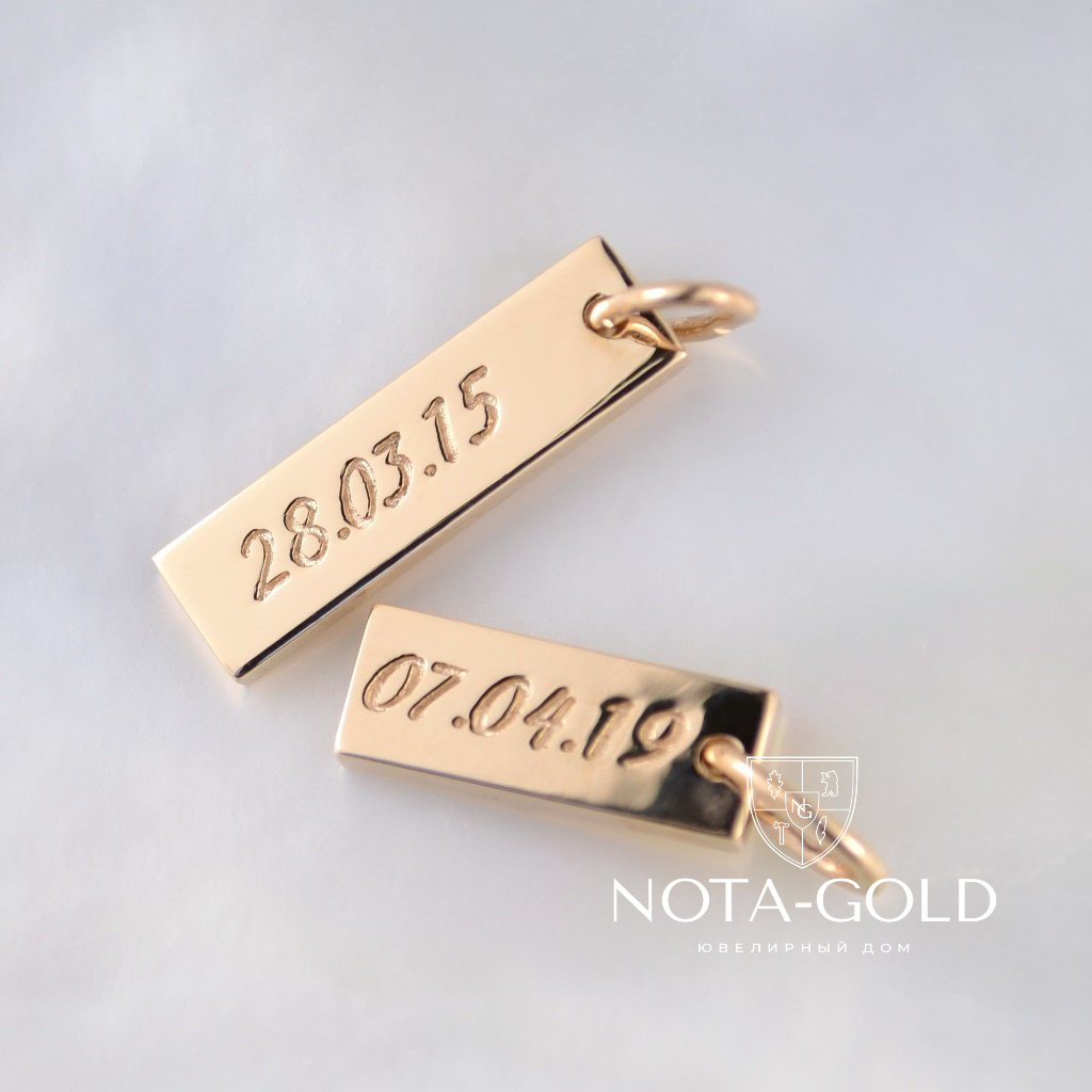 Золотые парные подвески из красного золота с именами детей и датами рождения (Вес: 5 гр.)