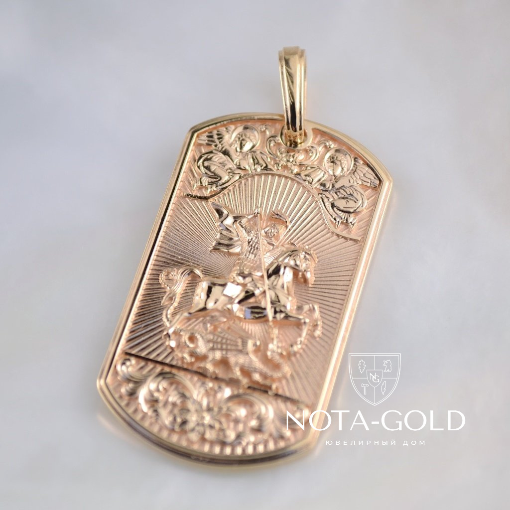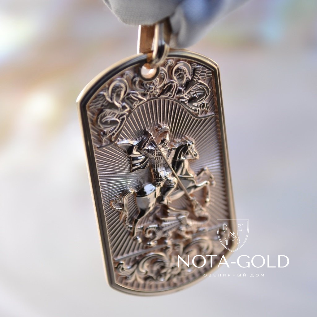 Нательный жетон из красного золота с изображением Георгия Победоносца и гравировкой имени святого (Вес: 12 гр.)
