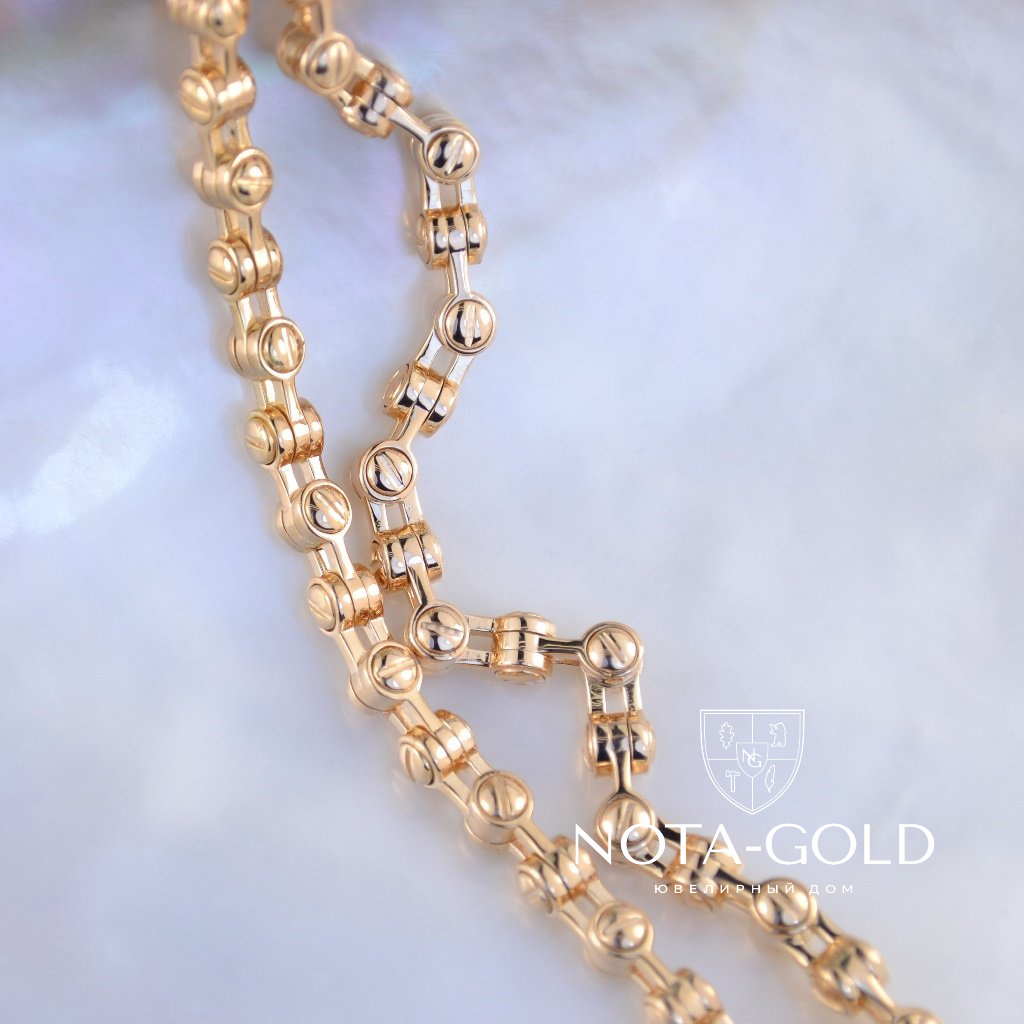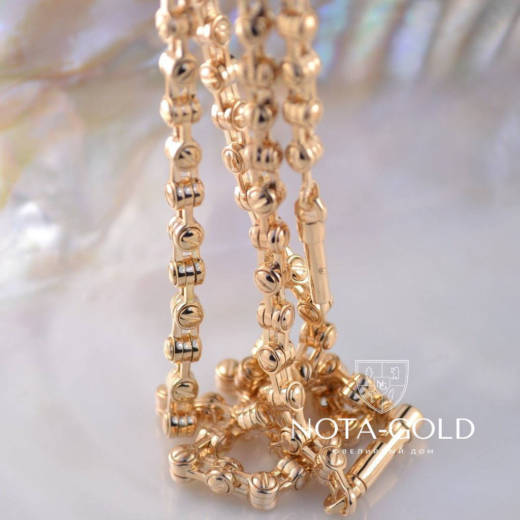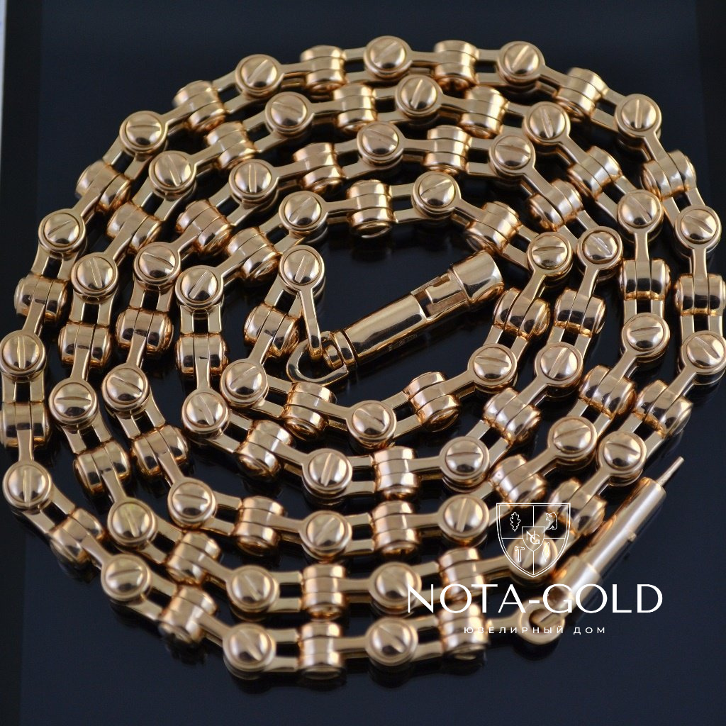Цепочка плетения Винт изготавливается на заказ по Вашим индивидуальным параметрам (вес, длина, ширина). Заказать можно из серебра 925 пробы, золота 585 или 750 пробы, может быть изготовлена из материала Мастерской или из серебра Заказчика. Цепочку из серебра можно покрыть родием для придания холодного, стального оттенка. Так же, дополнительно, можно почернить цепь Винт, что особо подчеркнёт рельеф плетения. Исходя из Ваших предпочтений, мы изготавливаем любой замок из золота: карабин, шпрингель, пенал, коробочка. Все подробности по стоимости и возможности изготовления, Вы можете уточнить у наших менеджеров.
