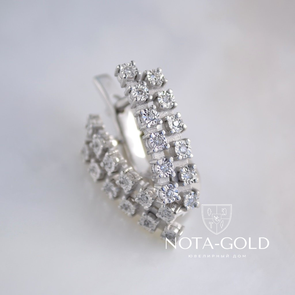 Женские матовые серьги на заказ из белого золота с бриллиантами (Вес: 3,5 гр.)