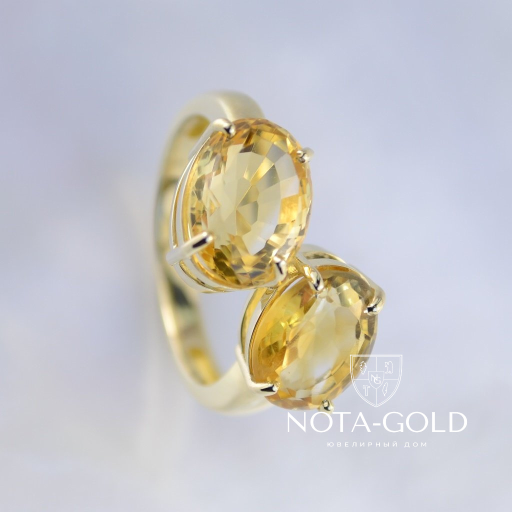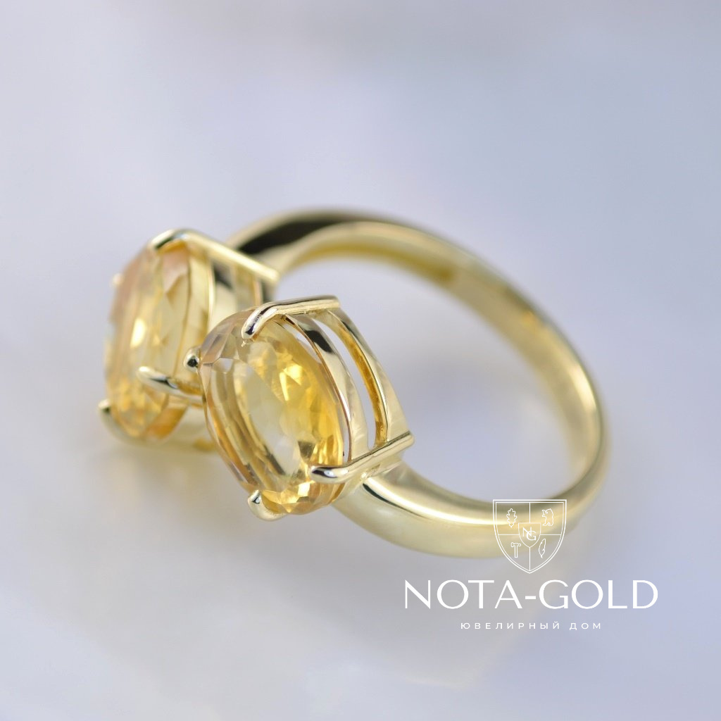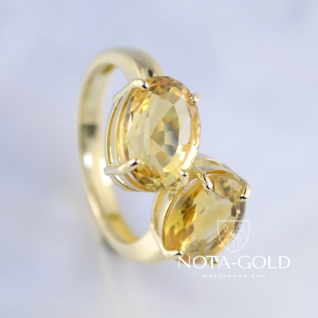 Золотое женское кольцо на заказ из жёлтого золота с цитрином (Вес: 7 гр.)