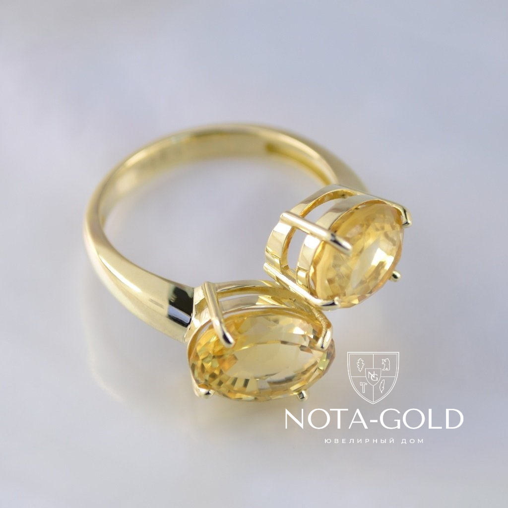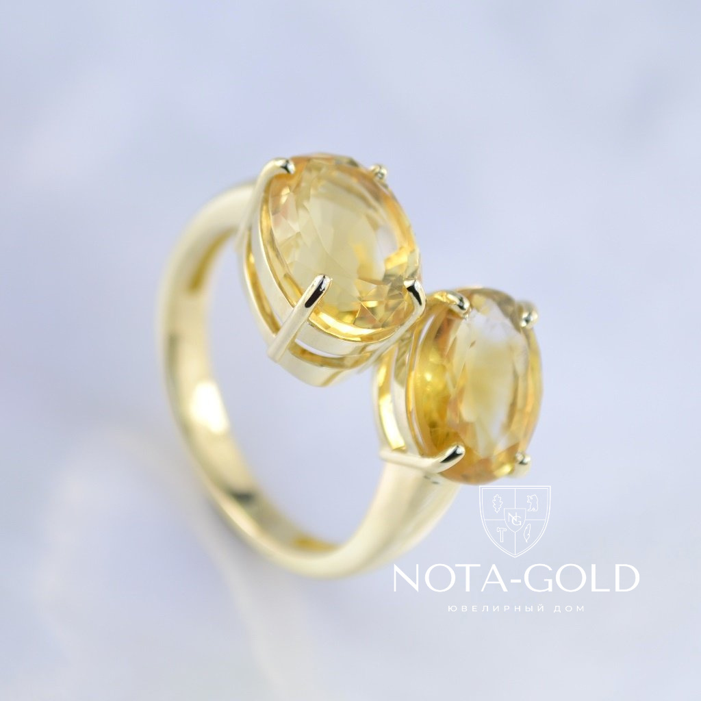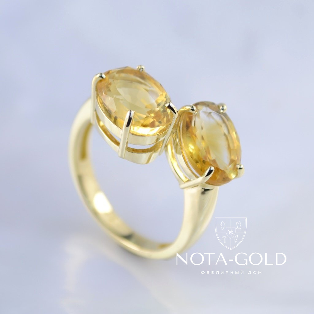Золотое женское кольцо на заказ из жёлтого золота с цитрином (Вес: 7 гр.)